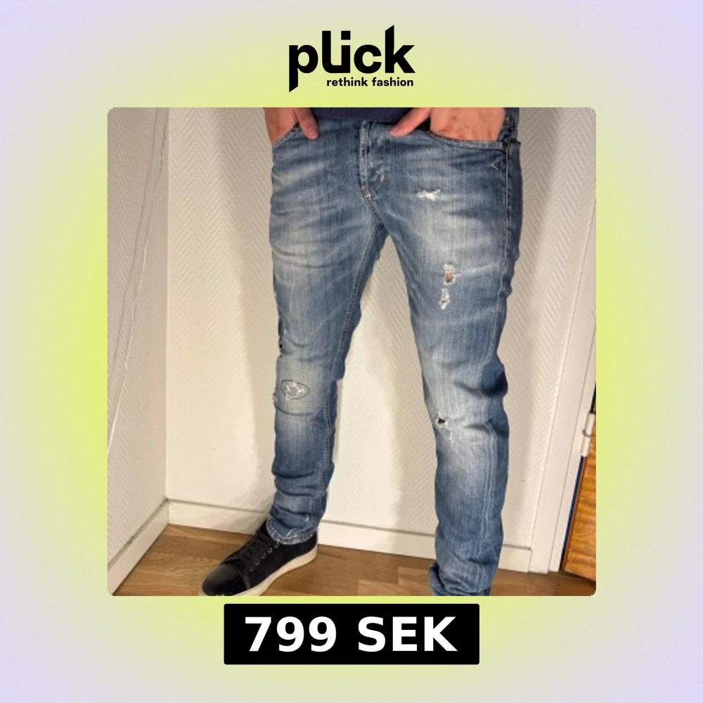 Snygga blå jeans med slitningar och lagade detaljer framtill och baktill. Jeansen har raka ben, klassiska fem fickor och en tvättad look som ger en cool vibe. Perfekta för dig som gillar en avslappnad och trendig stil.