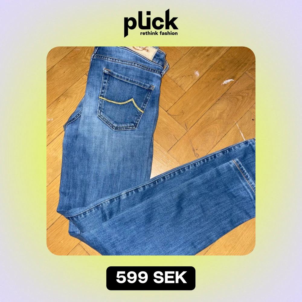 Säljer ett par blå jeans från Jacob Cohën! Storlek 27, så passar dig runt ≈170! Slim modell, skick 9/10 då jeansen har ett litet litet hål nere vid gylfen som syns på bild 4 samt ett vid vänstra fickan därför priset.