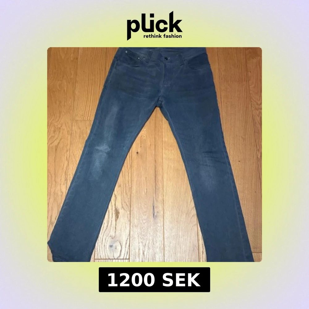Snygga mörkblå jeans från Nudie Jeans i klassisk straight fit. Jeansen har fem fickor, subtila slitningar och Nudie Jeans signaturbroderi på bakfickorna. Tillverkade i mjukt bomullsmaterial med knappgylf. Perfekt för dig som gillar stilrena och tidlösa jeans. Säljer pågrund av att jag går igenom min garderob just nu!