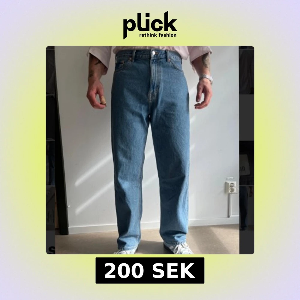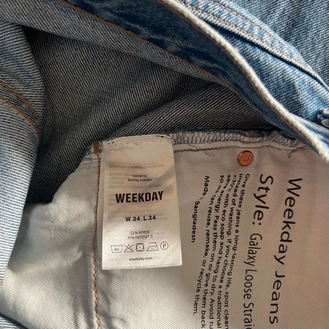 Säljer ett par klassiska blå jeans från Weekday, modell Galaxy Loose Straight. Jeansen har en rak och loose passform och fem fickor. Perfekta för en avslappnad stil och passar till det mesta.