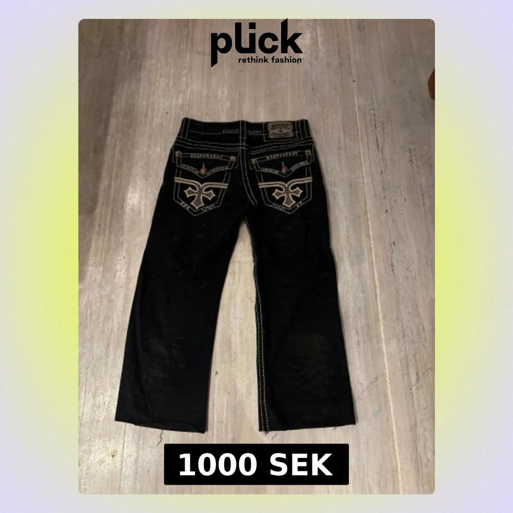 RARE Svarta jeans från Olimp med bootcut passform och Dorian Fit. Snygga kontrastsömmar i vitt, detaljerade bakfickor med broderad logga och metallknappar med stjärnmotiv🔥🔥. Materialet är klassisk jeans och midjan är normal. uppsydda. Perfekt för dig som gillar statement-jeans🙏