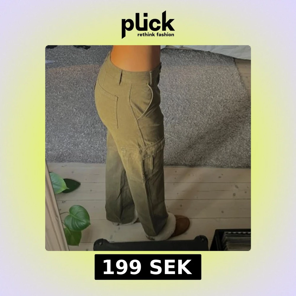 Snygga olivgröna cargobyxor med flera fickor och en avslappnad passform🤍