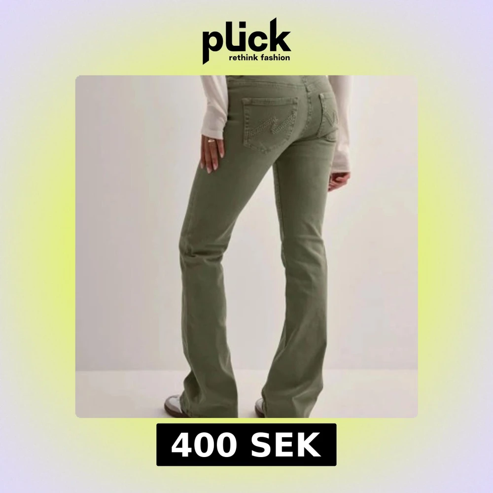 Snygga olivgröna bootcut jeans från Nelly!🎀 dom är så extremt fina och är helt utsålda! Enbart använda 2 gånger💞ca 85 i innerbenslängd🌸köpa för 699, säljer för 400☀️