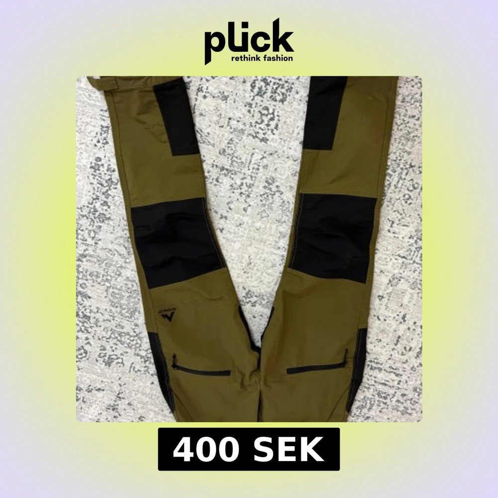 Säljer ett par olivgröna byxor från McKinley med svarta detaljer. Byxorna har dragkedjor och knappar vid bensluten för justerbar passform. Perfekta för utomhusaktiviteter med slitstarkt material och praktiska fickor.
