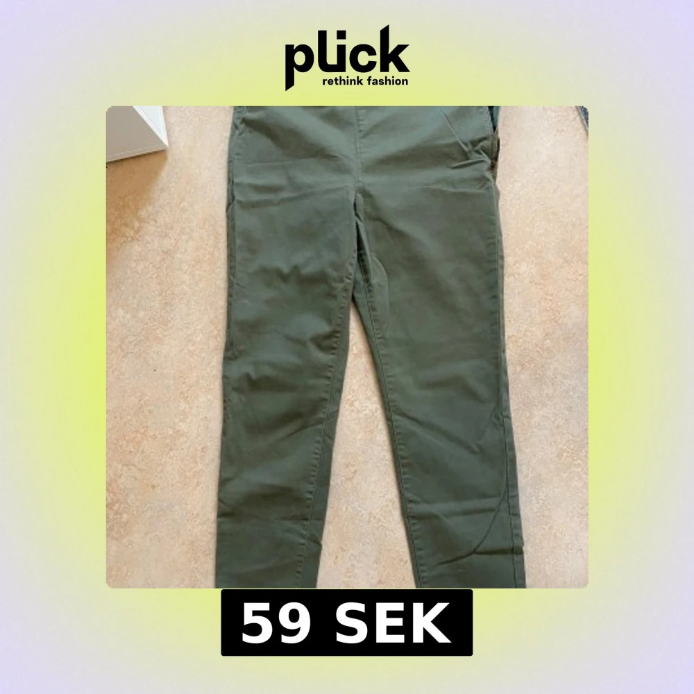 Snygga olivgröna chinos från Lindex i storlek 44. Byxorna har klassisk passform med dragkedja och knapp framtill. Tillverkade i mjuk bomull som känns skön mot huden. Perfekta för en avslappnad och stilren look.