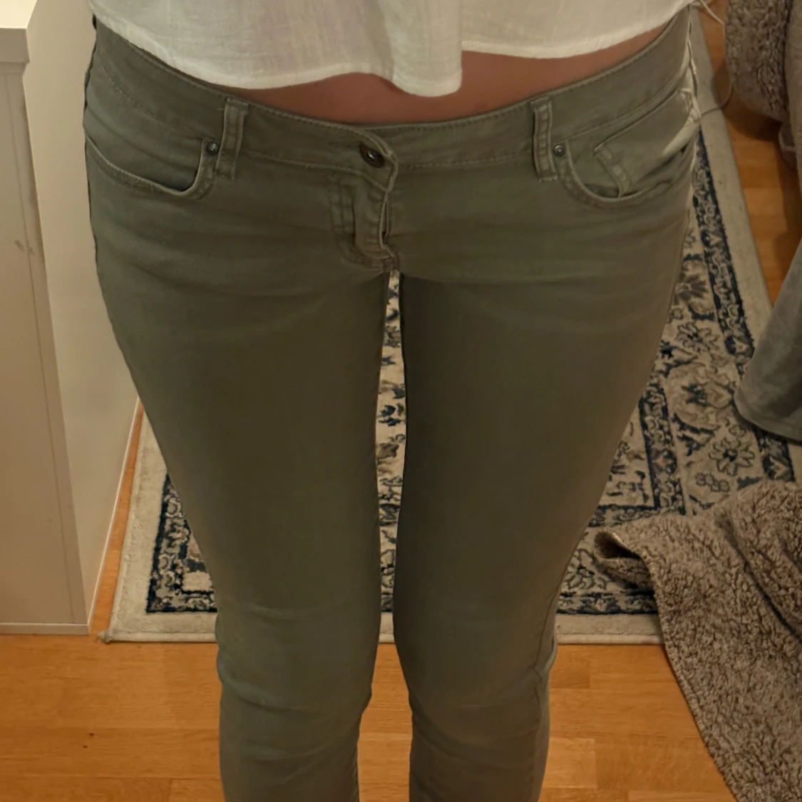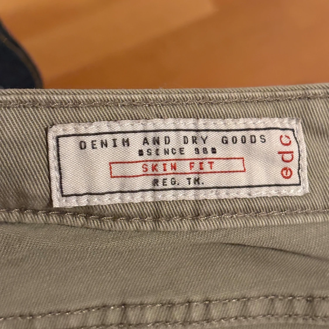 Säljer ett par olivgröna jeans från edc i storlek 36. Byxorna har klassisk femficksdesign, låg midja och smal passform. Materialet är mjukt och stretchigt för en bekväm känsla. Perfekta för dig som gillar en tight look.
