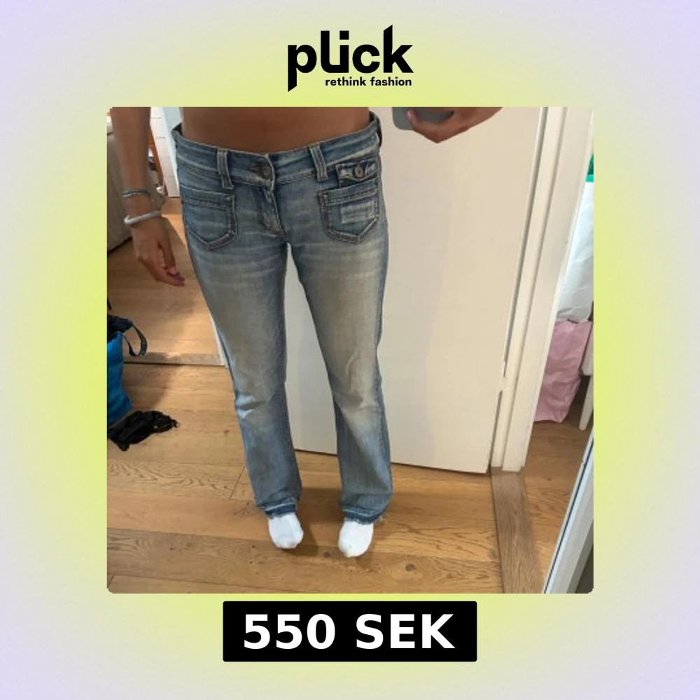 Säljer ett par Only jeans i ljusblå tvätt med snyggt slitna detaljer och klassiska fem fickor. Jeansen har bootcut passform och låg midja. Lite slitningar mellan benen men sydda hos skräddare så att de ej ska gå upp mer. Skriv för mer info! Är i W31 men passar nog W28 lite för stora för mig som har W27 💕💕