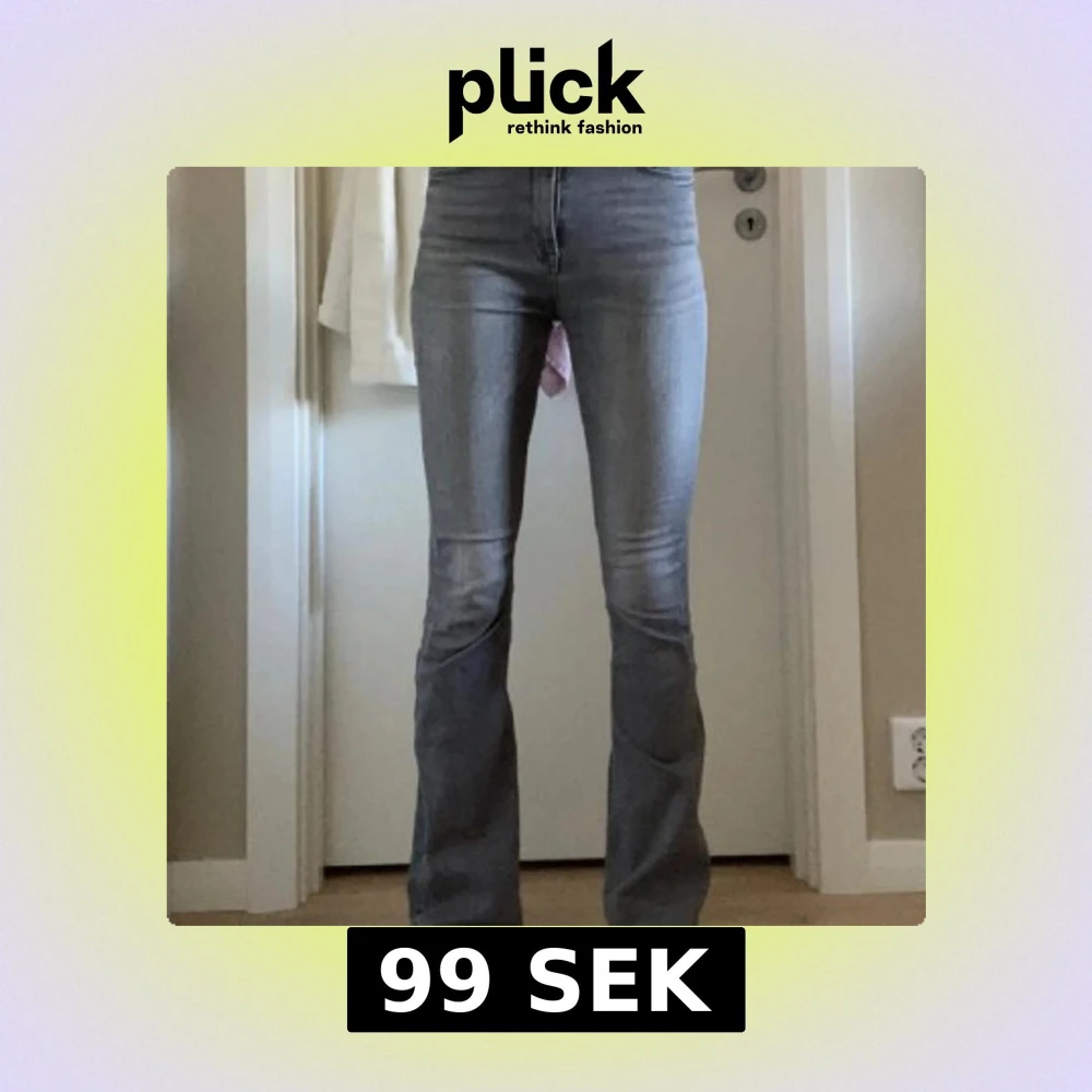 Säljer ett par grå jeans med bootcut-modell, materialet är ”stretchigt” alltså sitter det inte stelt mot kroppen! Väldigt snygga och sköna jeans! Jag är 171 cm