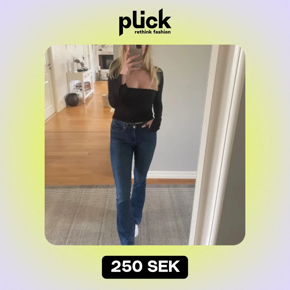 Jättefina jeans i flare modell från only. Storlek S och längd 32, jag är 1,63 för referens och dessa är bra i längd på mig. Använda men fortfarande i bra skick! 🤍