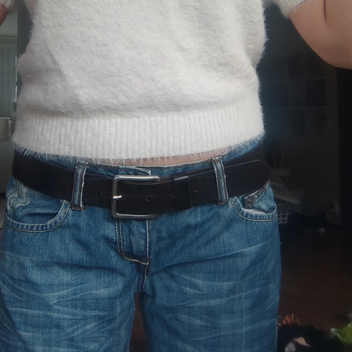 Low rised jeans⚡korta på mig som är 175 så perfekt om man är lite kortare. Väll använda men det ger vintage vibe. Anorlunda vid vaden men de sitter fint ändå. Fråga gärna om du vill ha fler bilder.⚡👑
