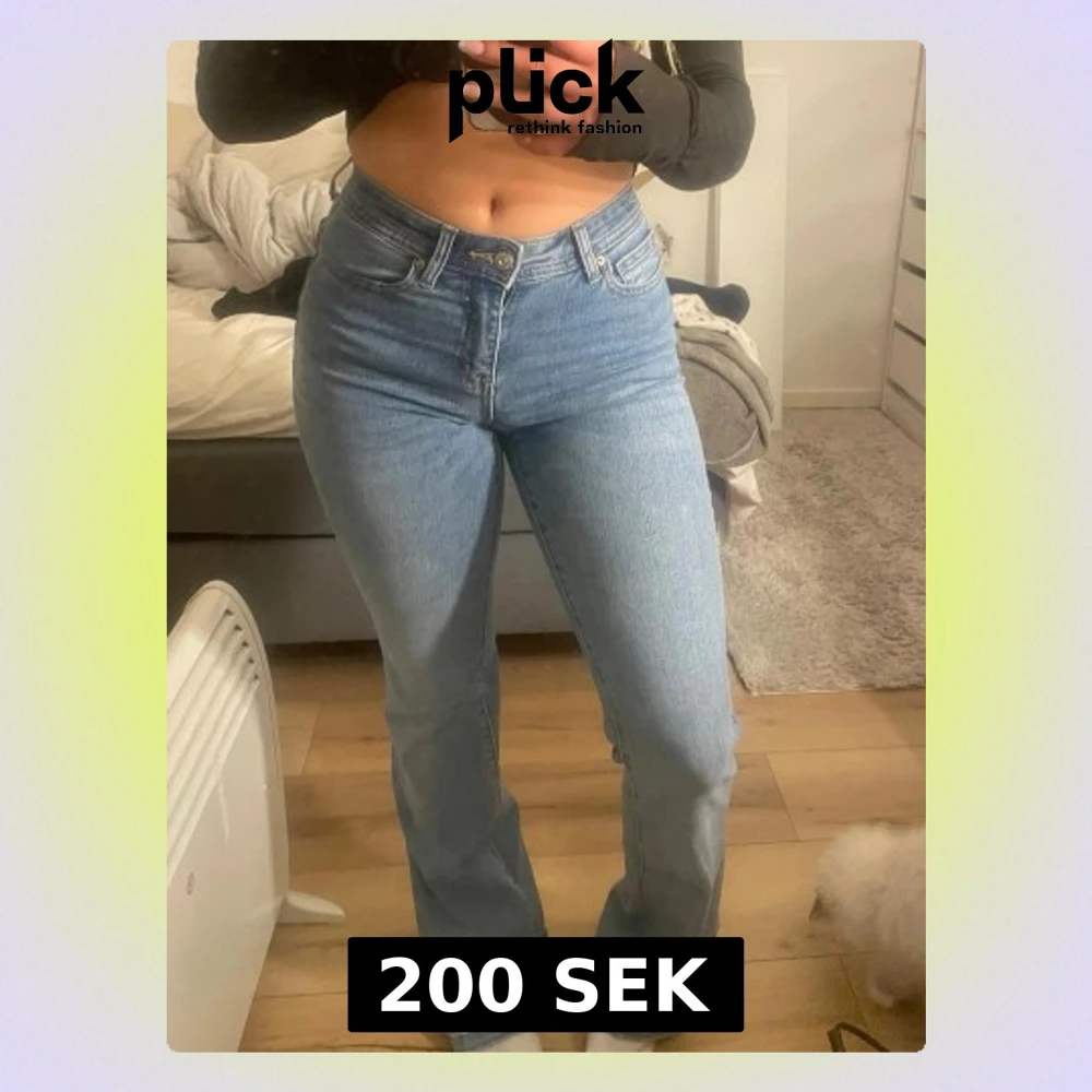 Säljer ett par snygga midwaist ljusblå bootcut jeans. Säljer då dom var för tajta i midjan och lite för långa i benen. Har bara testat dom men drog av prislappen innan jag bestämde ifall jag ville behålla dom🫣