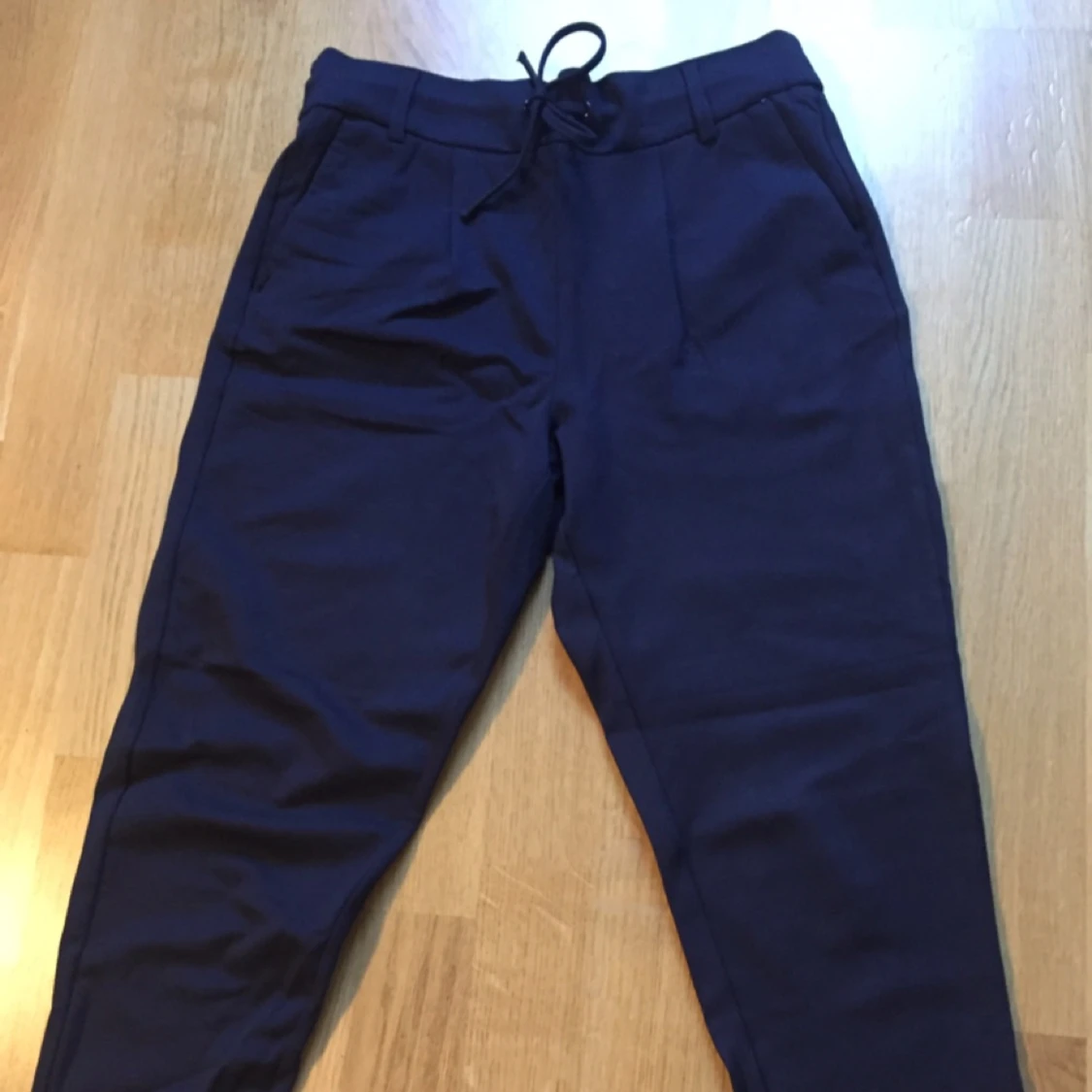 Mörkblå pop-trash byxor i storlek XS och längd 30. Supersköna och inte använda mer än någon gång. Köparen betalar frakt.