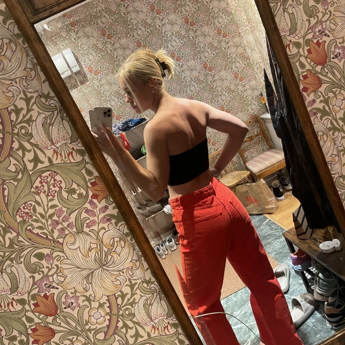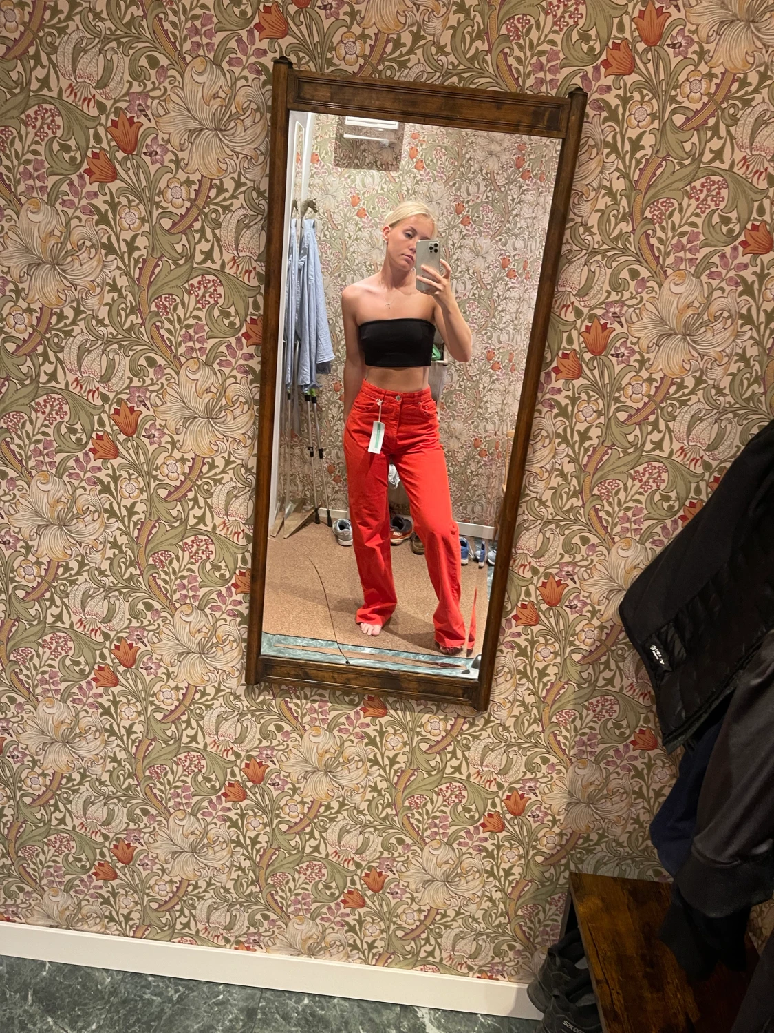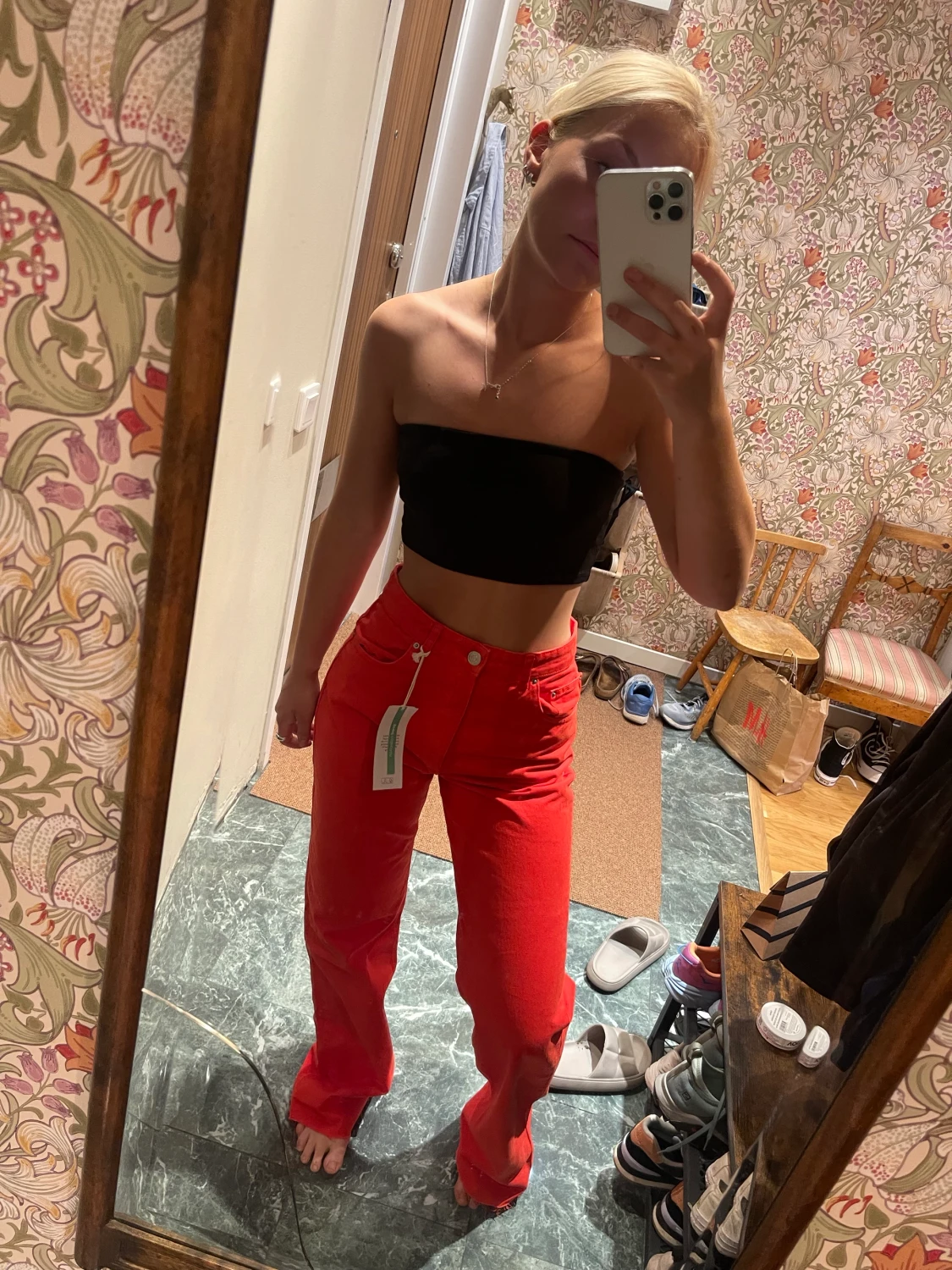 Superfina jeans i en orange röd färg! Aldrig använda!