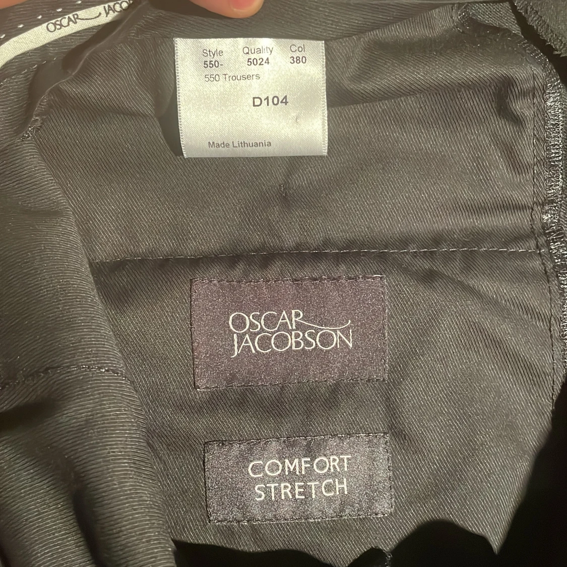 Säljer mina Oscar Jacobson kostymbyxor i välskött begagnat skick. Inga defekter eller fel på dem. 100-100,5 cm benlängd, 49,5-50 cm i midjemått. Nypris ≈ 2000-2500, mitt pris 399