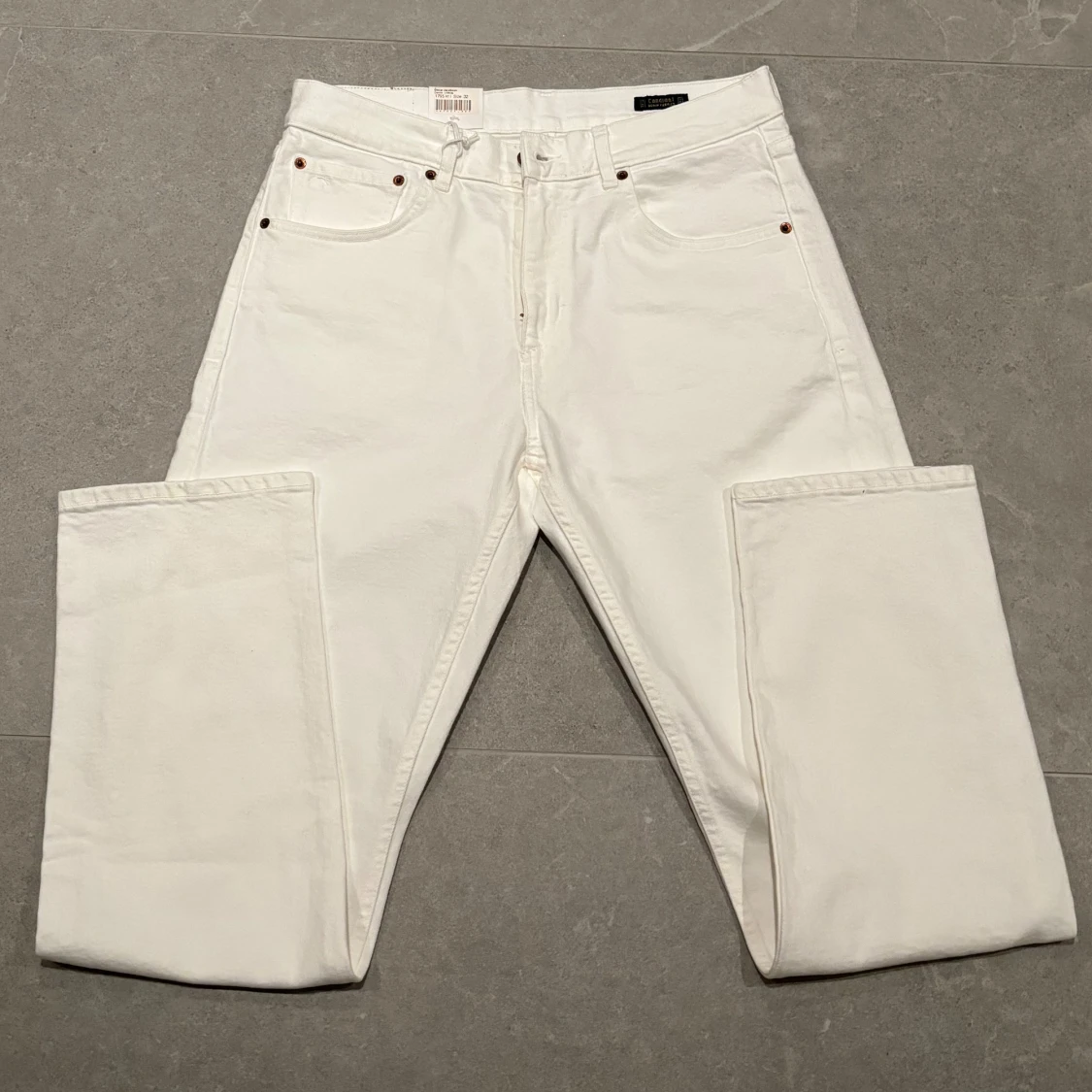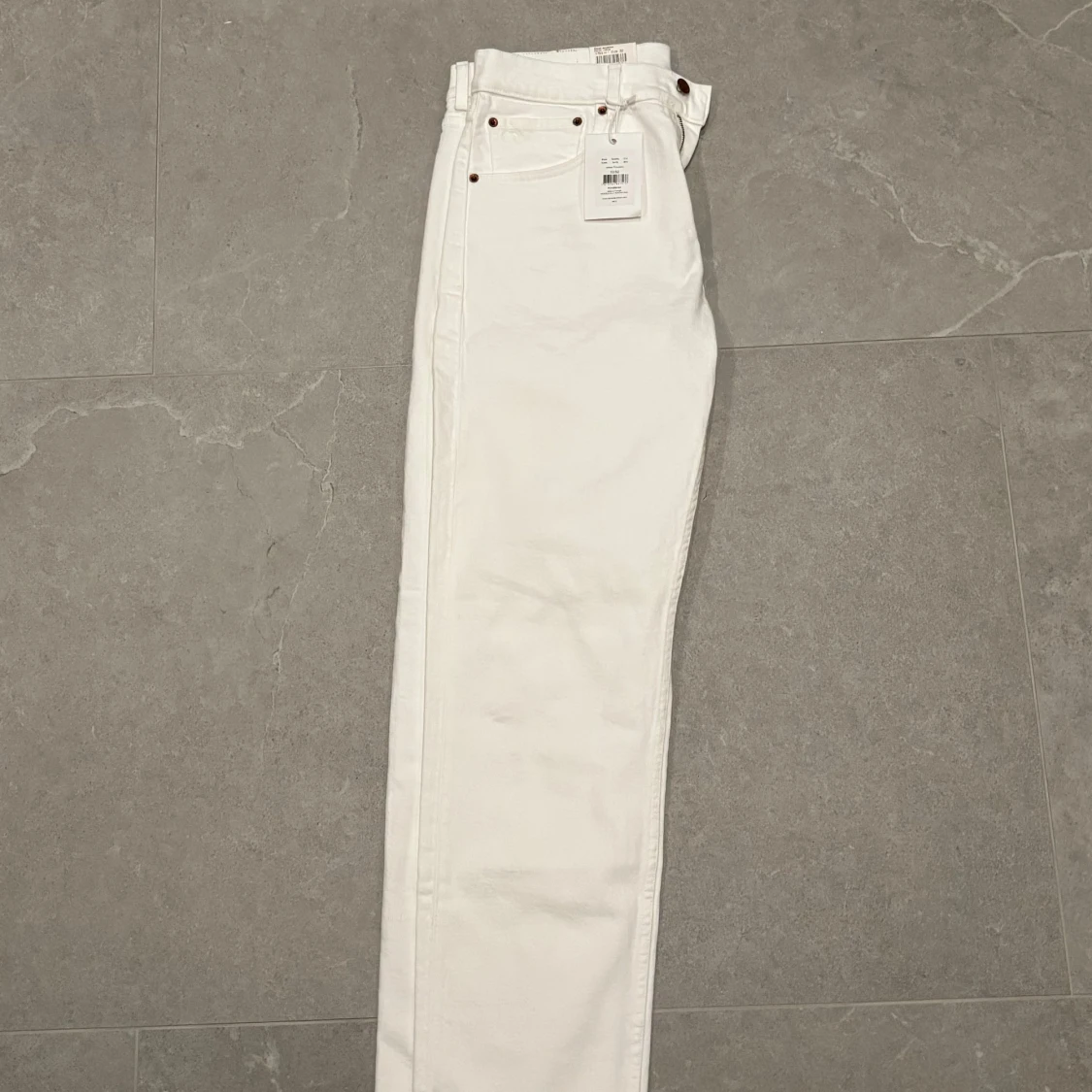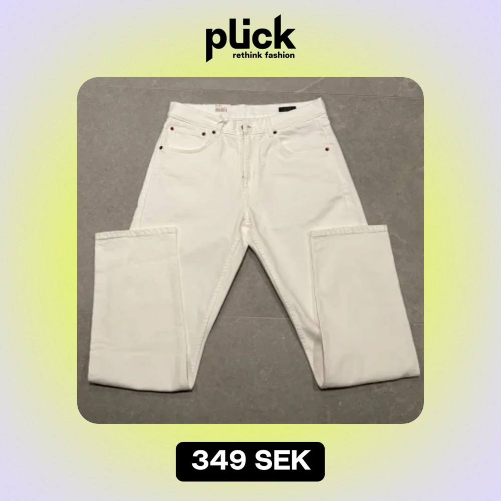 Vita Oscar Jacobson jeans som inte passade mig. Storlek 32:32 i lite vidare straight fit satt lite pösigt på mig som är 184 69kg. Tags kvar nypris 1795, kan komma ner i pris.