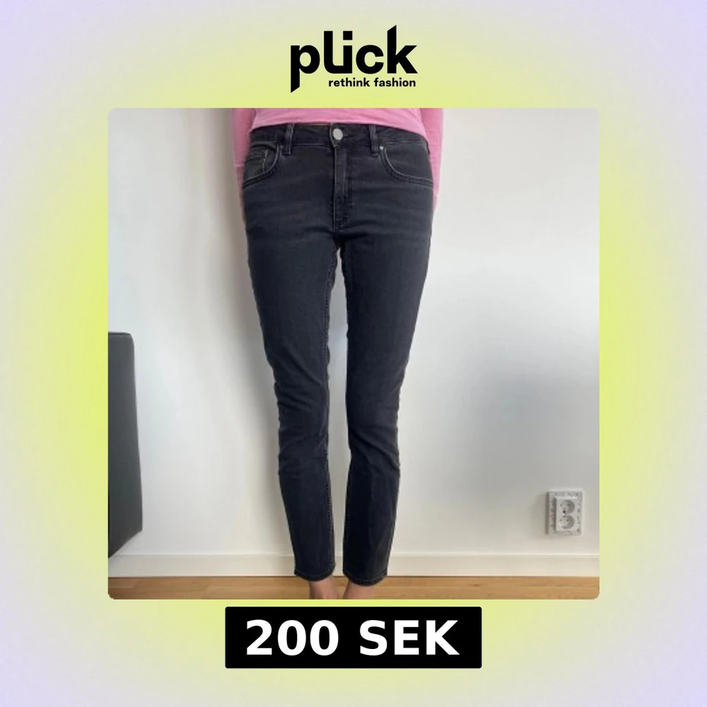 Snygga svarta skinny jeans från & Other Stories i klassisk femficksmodell. Jeansen har hög midja och smal passform hela vägen ner, med diskreta sömmar och knappstängning framtill. Perfekta till sneakers eller boots.
