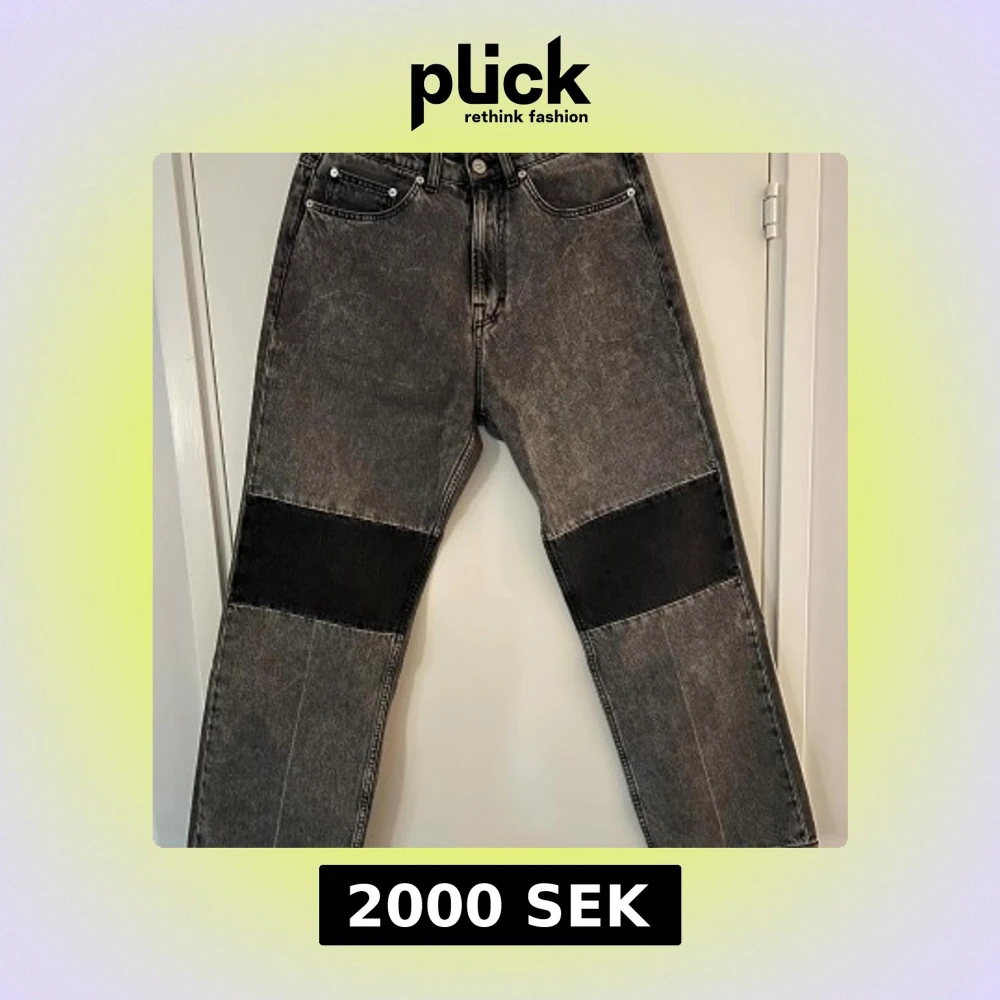 Our Legacy Extended Third Cut Black And Grey. Our Legacy jeans med kontrasterande knän och relaxed fit. Exemplar med riktigt mörka knän som långt ifrån alla exemplar från fabriken har, många har rätt ljusa knän vilket enligt min mening inte är lika snyggt. Mycket bra skick. Säljer för att de inte passar mig längre. Innerben: 74 cm Midja: ca 80 cm Lårvidd: 66 cm Fotvidd: ca 47 cm Nypris: 3700 kr