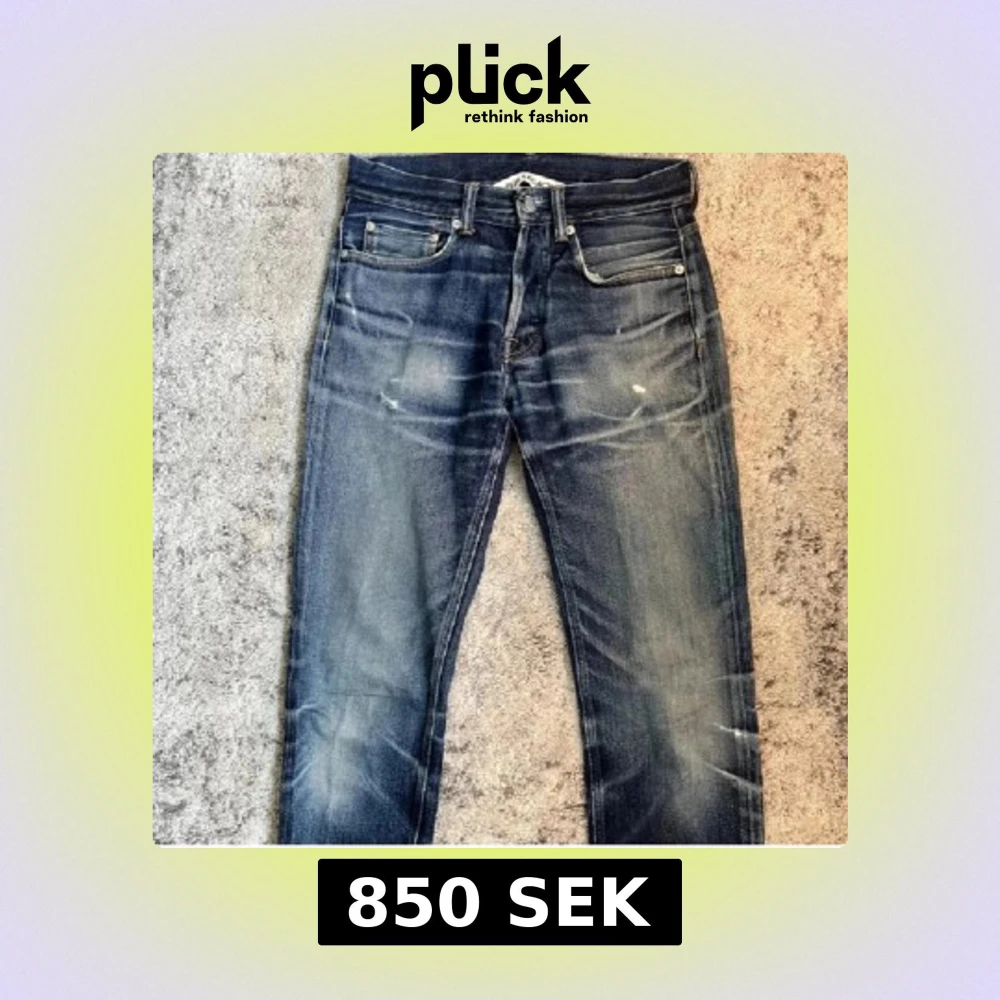 Säljer ett par klassiska blå jeans från Our Legacy med raka ben och knappar i gylfen. Jeansen har en snygg tvätt med slitningar och ljusare partier på låren och knäna. Perfekta för dig som gillar en tidlös denimlook. Helt galna jeans som är ovanliga, samt galen tvätt och detaljer. Ny priset ligger på cirka 4000kr tror jag. Den enda defekten skulle jag säga är där man sätter i knappen på tredje bilden, Man kan fortfarande knäppa och den åker inte ut så man får tolka det hur man vill