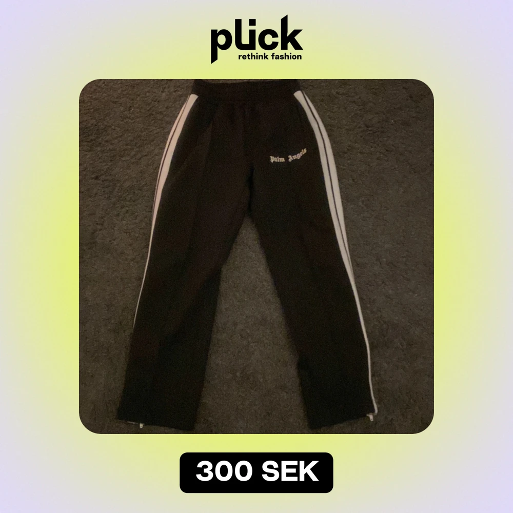 Hej säljer nu mina Palm angels byxor i storlek s perfekt nu till hösten dom är i fint skick men lite små fläckar på vita linjen som ni ser på andra bilden men det är inget man tänker på när man har de på sig passar både tjejer o killar