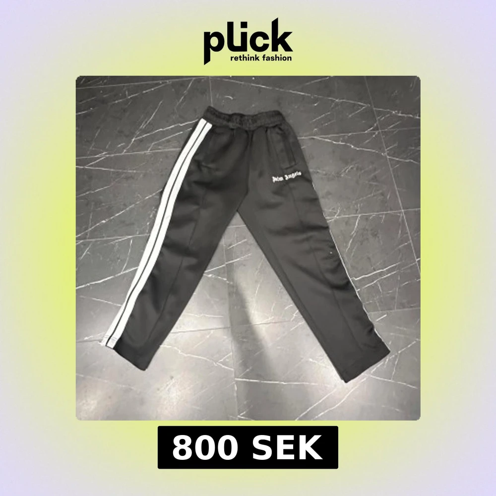 Snygga svarta mjukisbyxor från Palm Angels med vita ränder längs sidorna. Byxorna har en elastisk midja och en avslappnad passform, perfekt för en casual look.