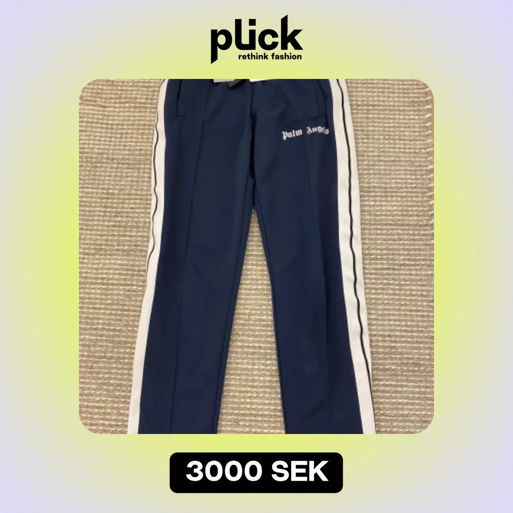 Palm Angels byxor mörkblå I storlek M med taggen kvar. Det är en liten fläck som man knappt ser Sick 9/10 pris går att diskutera Jag är 180cm och jag kan precis ha dom