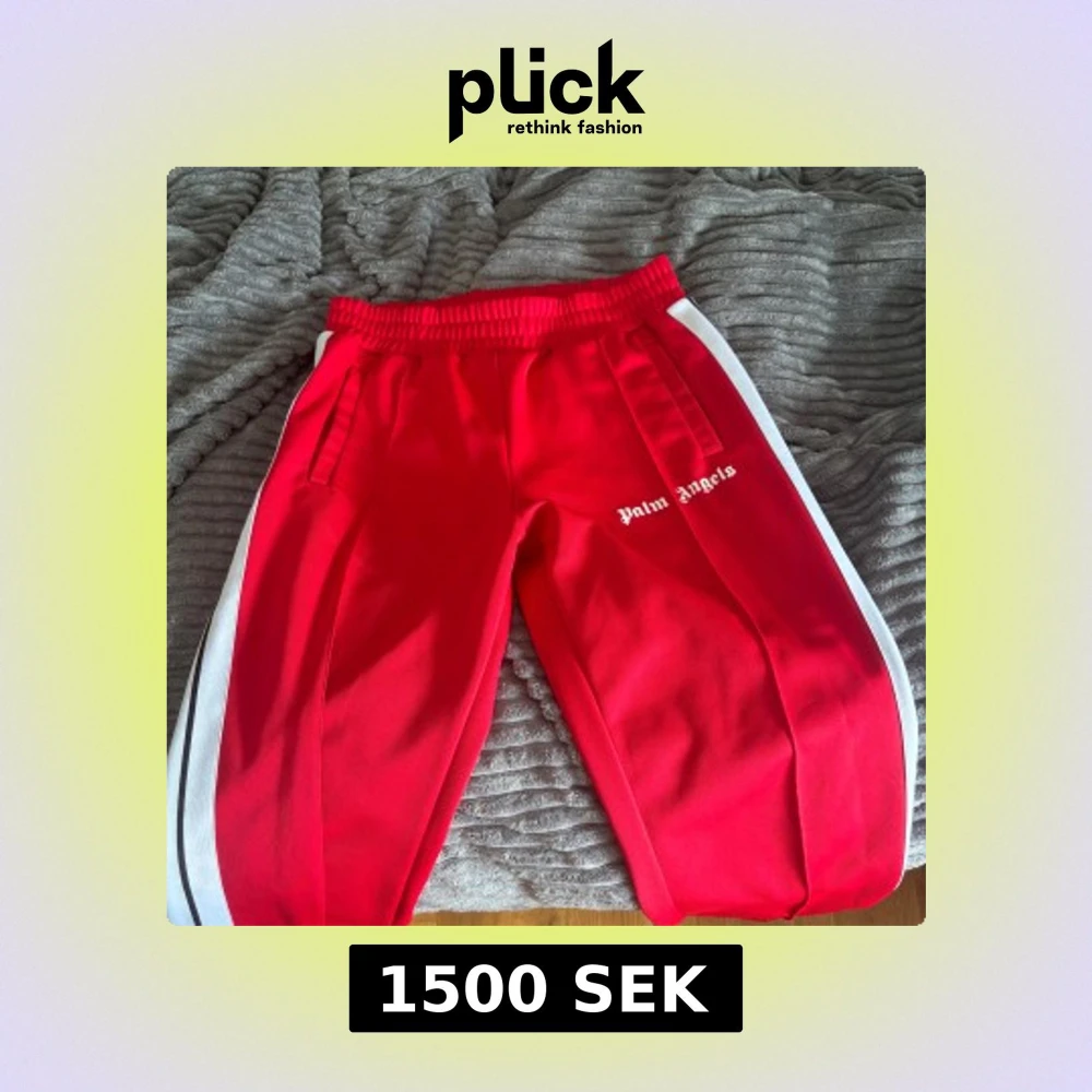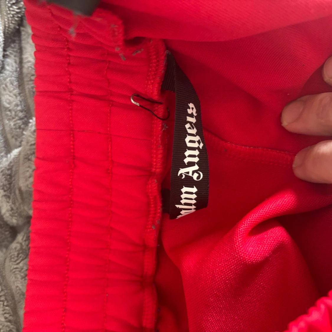 Palm Angels röda mjukisbyxor med vita sidoränder och logga på låret. Byxorna har elastisk midja och raka ben. Tillverkade i 100% polyester för en sportig vibe. Perfekta för dig som gillar streetwear och vill sticka ut.