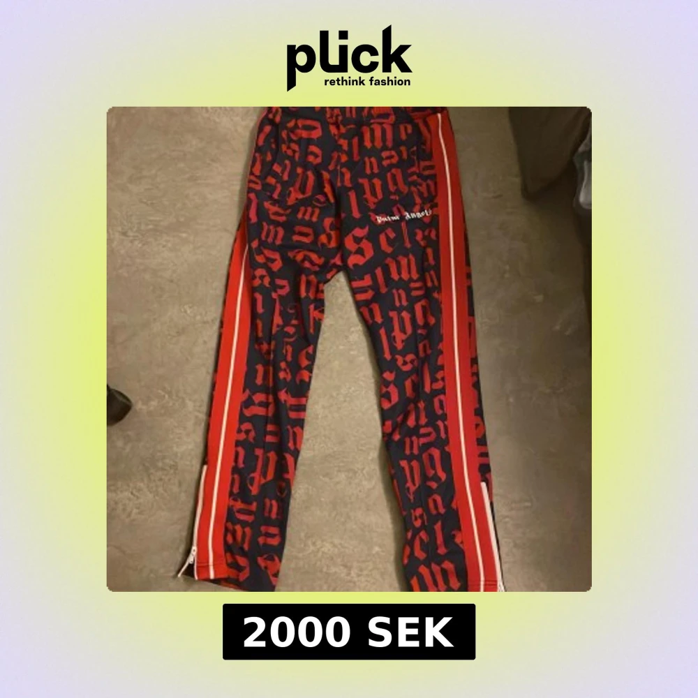 Snygga byxor från Palm Angels med ett iögonfallande mönster i rött och blått. Byxorna har en sportig look med dragkedjor vid bensluten och ränder längs sidorna. Perfekta för dig som vill sticka ut!