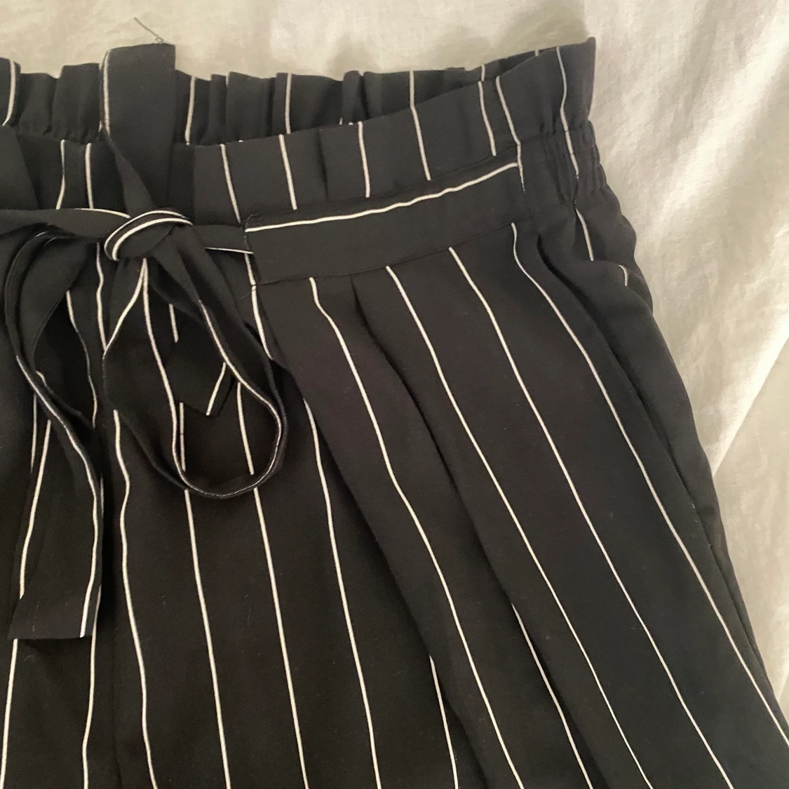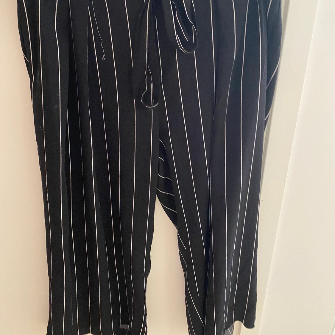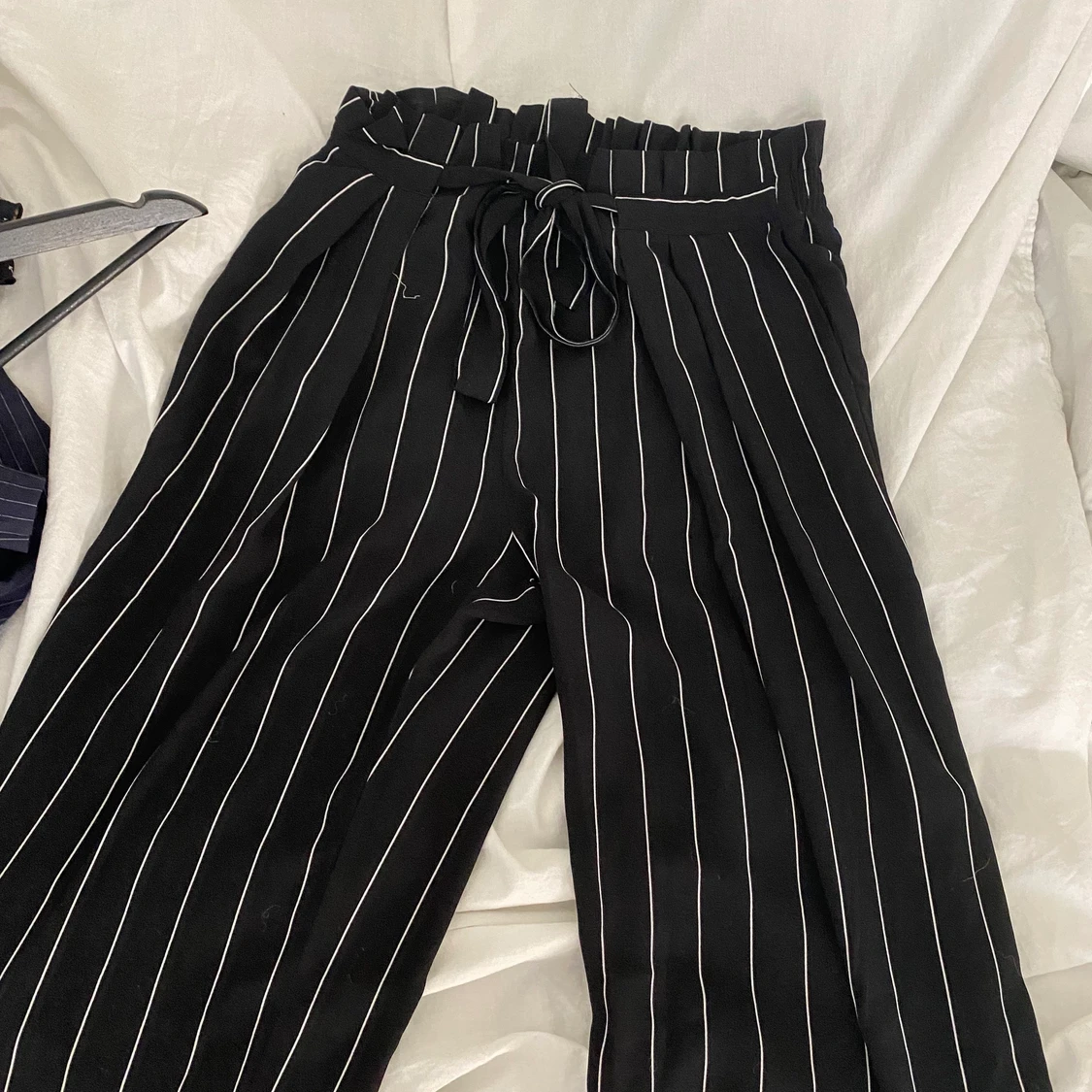 Svart-vit randiga kostymbyxor från KappAhl. Välanvända men växt ur. Trots detta är de i bra skick. Luftiga och stretchiga!
