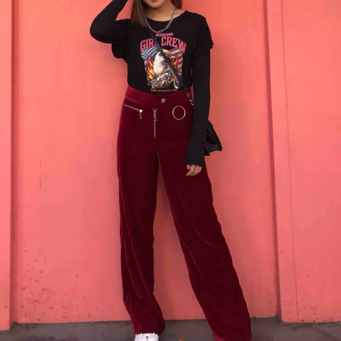 Sjukt snygga byxor i storleken xs men dem är ganska stora i storleken så dem kommer passa dig som har s också. Jättebra skick. Hör av dig om du har några frågor. 💕