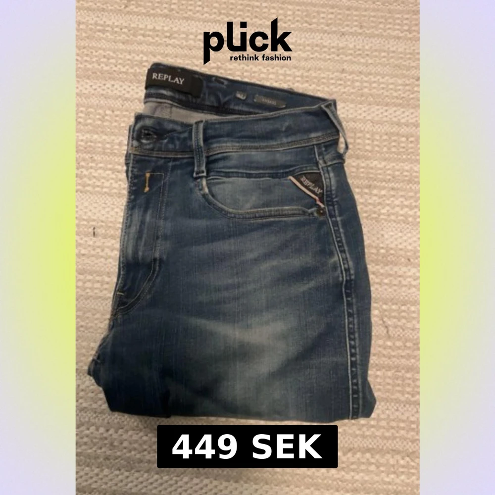 Snygga Replay Anbass jeans i mörkblå. Slim fit-modell med 31 vid midjan och 32 på längden. Jeansen har skön passform. Vi kan också diskutera om priset.