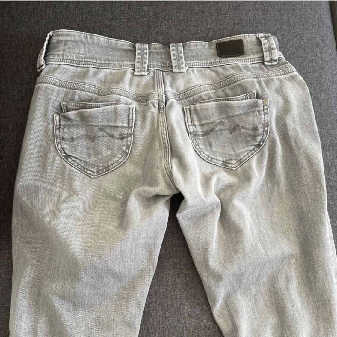 Säljer mina fina pepe jeans i färgen ljusgrå jag köpt hör på Plick! Säljer då dom inte sitter som jag vill på mig. Midjemått: 78, Innerbensmått: 82💗