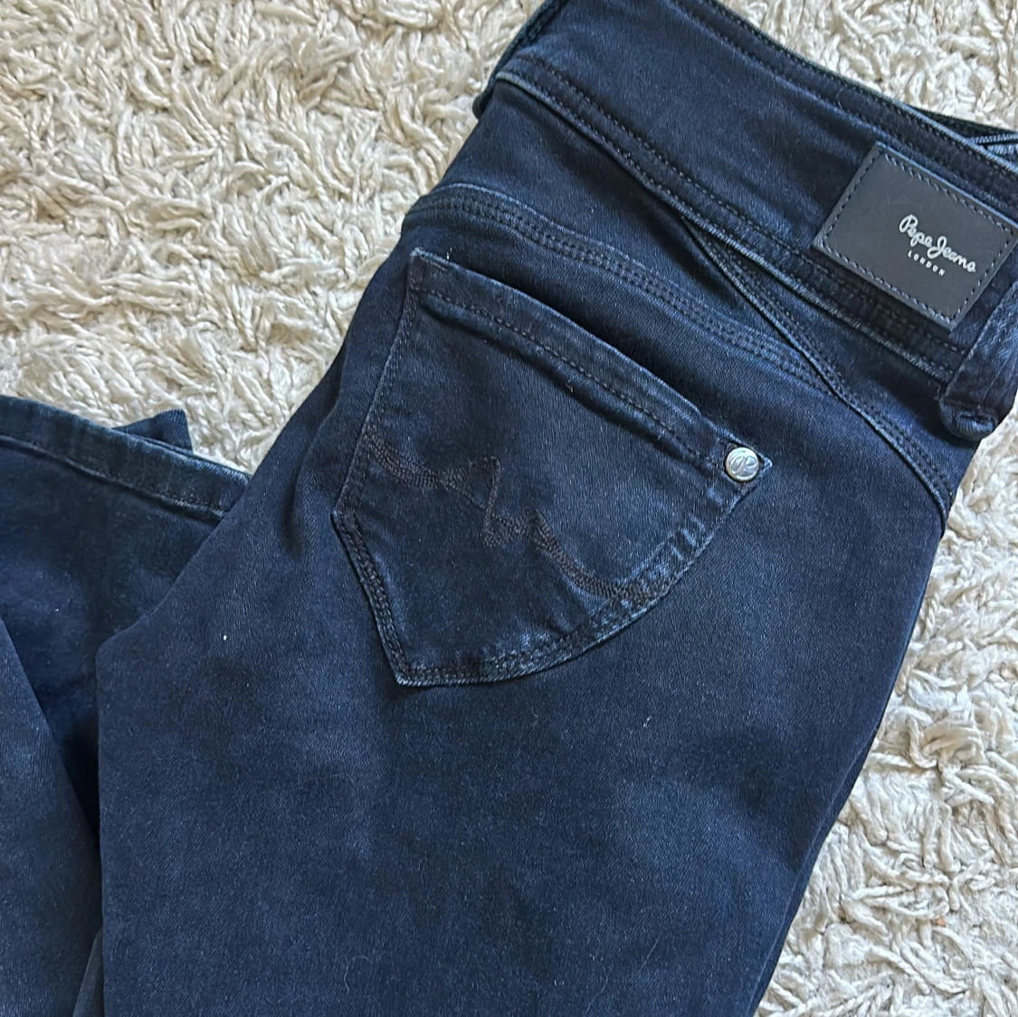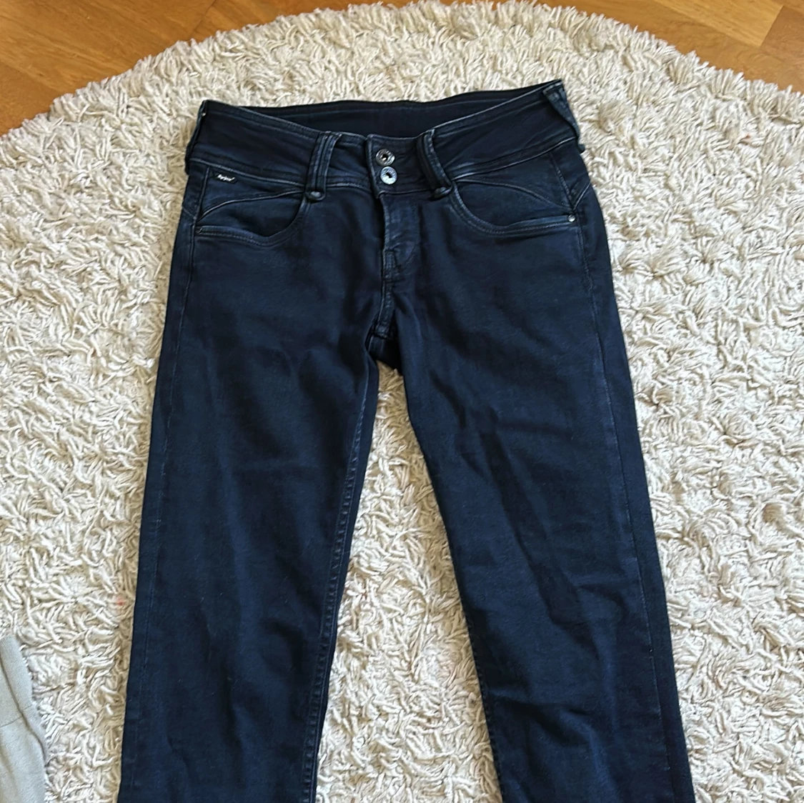 Säljer de här low waist pepe jeansen för de är försmå, aldrig använts och de är i bra skick Storlek: 26/ 32 Nypris:999kr
