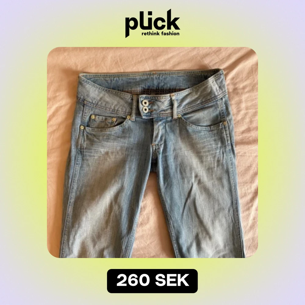 Supersnygga jeans från pepe Lågmidjade och bootcut, avklippta längst ned Midja (rakt över): 39 cm Innerben: 77 cm