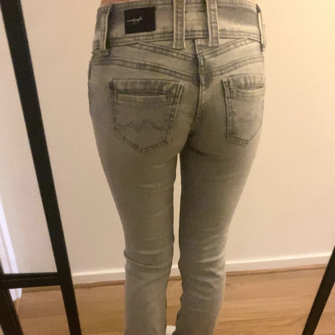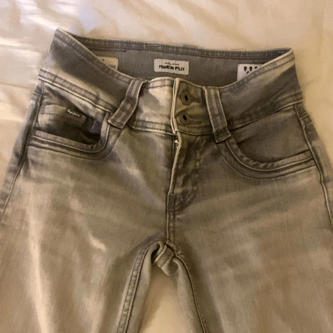 Säljer ett par jätte fina ljus gråa pepe jeans. De är använda runt 3 gånger! Säljer dessa då de är 2 storlekar för små, det är straight fit men sitter thight på mig eftersom de är så små!❤️Pris kan diskuteras