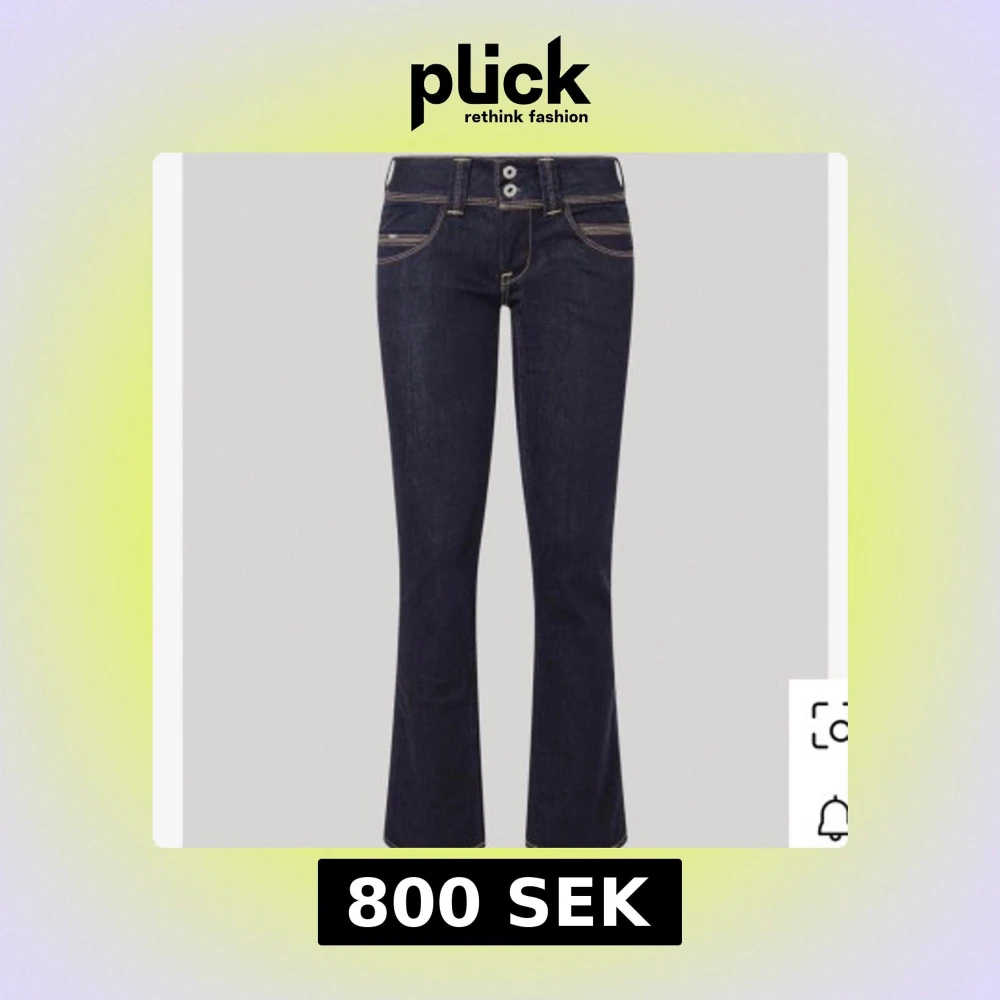 Snygga mörkblå jeans med bootcut passform och dubbla knappar i midjan. Jeansen har kontrastsömmar och klassiska fickor fram och bak. Perfekta för dig som gillar en tidlös och stilren look. W:25 L:32 nypris: 1080kr