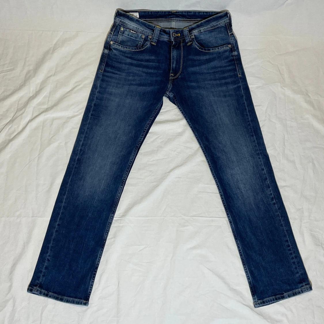 Säljer ett par snygga blå Pepe Jeans i regular fit. Jeansen är i bra skick och storleken är W31, L30.