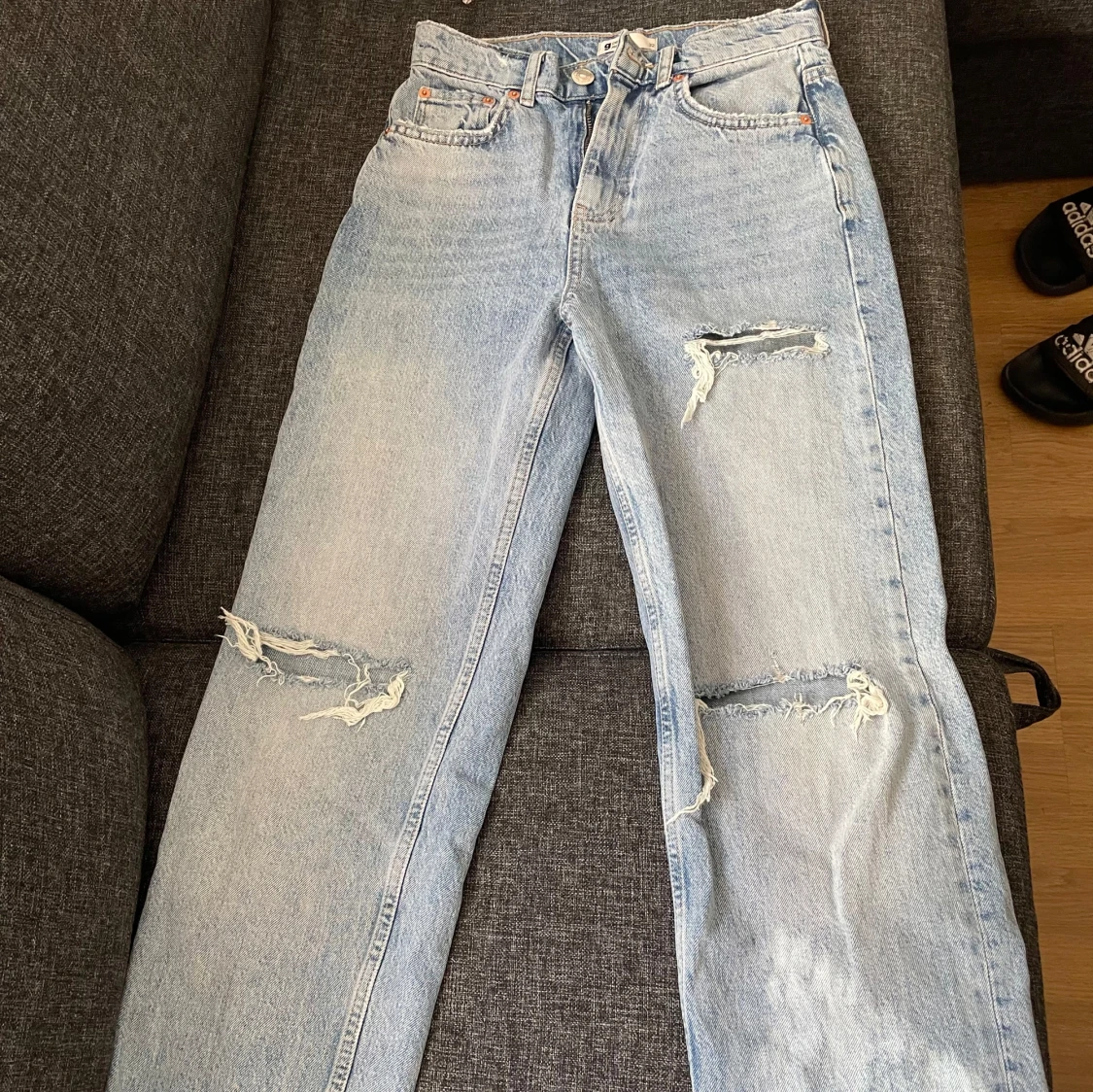 Snygga ljusa jeans med slitningar på framsidan från gina. Aldrig använda.