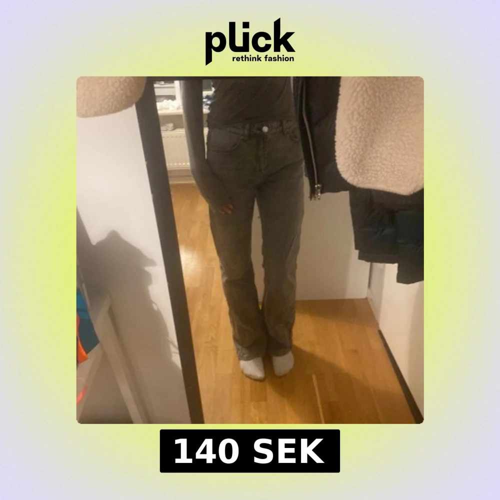 Säljer ett par grå jeans från gina tricot i storlek 32. De har en klassisk femficksdesign, hög midja och bootcut-ben som ger en snygg siluett. Jeansen är i ett mjukt denimtyg och passar perfekt till en avslappnad stil.
