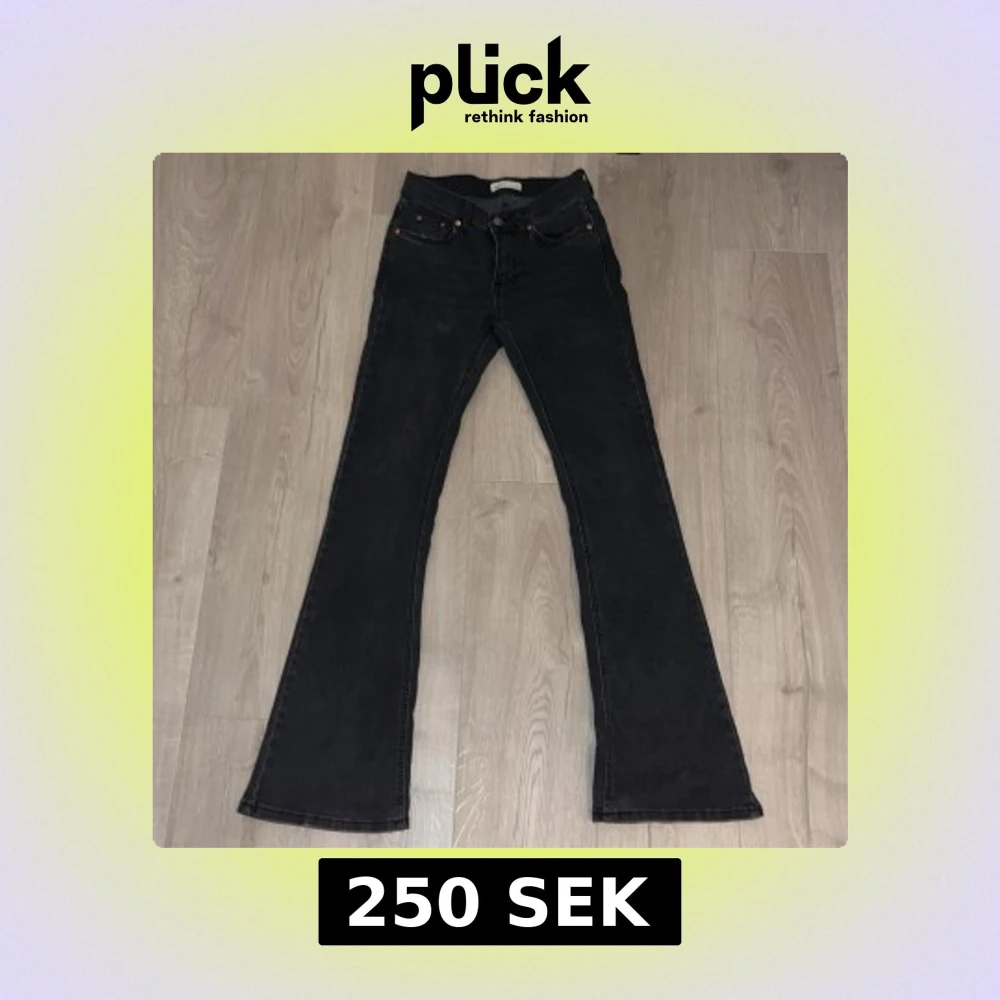 Snygga svarta jeans från Perfect Jeans i storlek 34. Modellen har klassisk femficksdesign och bootcut-ben som ger en schysst siluett. Jeansen är tillverkade i mjukt denimtyg med normal passform och midwaist. Perfekt för dig som gillar stilrena och tidlösa jeans.