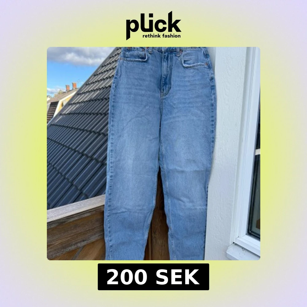 Ljusblå jeans från Gina Tricot med hög midja och klassiska femficksdesign. Jeansen har raka ben och dragkedja med knapp framtill. Tillverkade i jeansmaterial med snygga kontrastsömmar och bakfickor med enkel design.