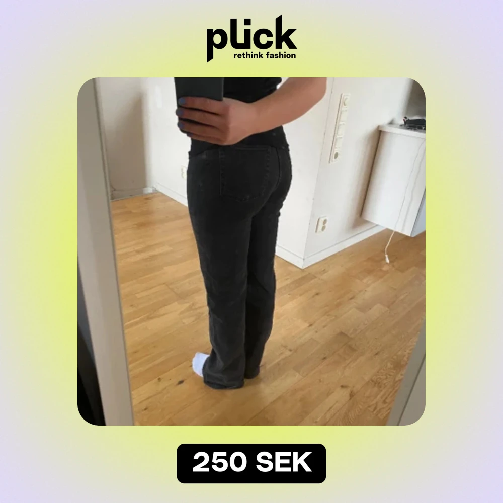 Svarta jeans med hög midja, som aldrig riktigt kommit till användning, jättefin svart färg. Jag är ca 166cm för referens!❤️
