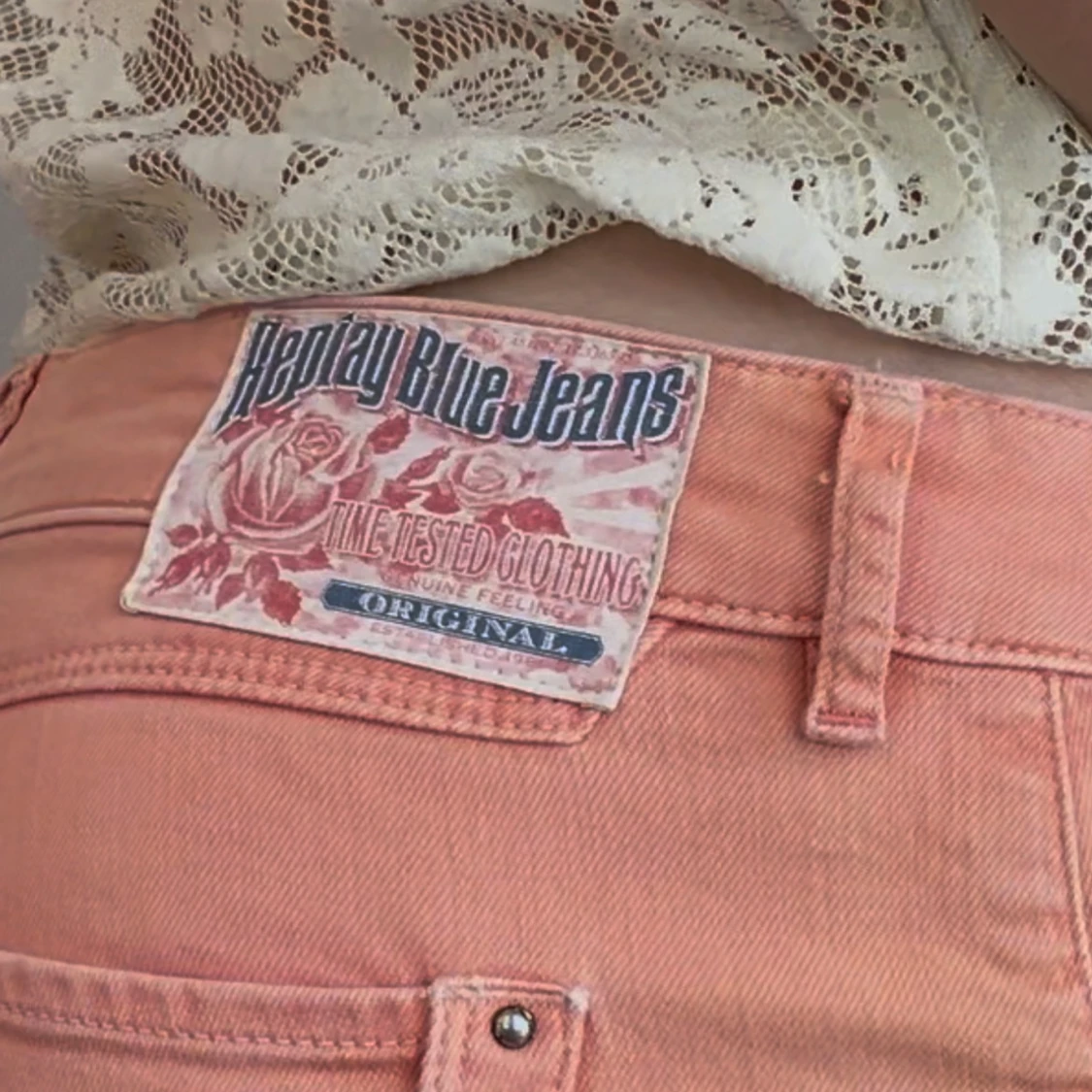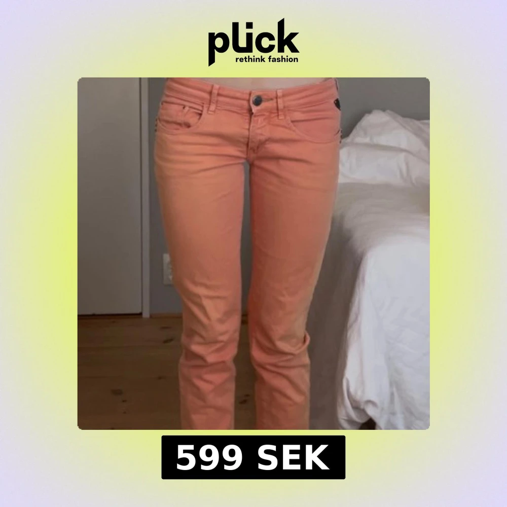 Säljer ett par persikofärgade jeansbyxor från replay. Bootcut/straight och väldigt låga. Jag är 168 men passar längre och kortare personer också.