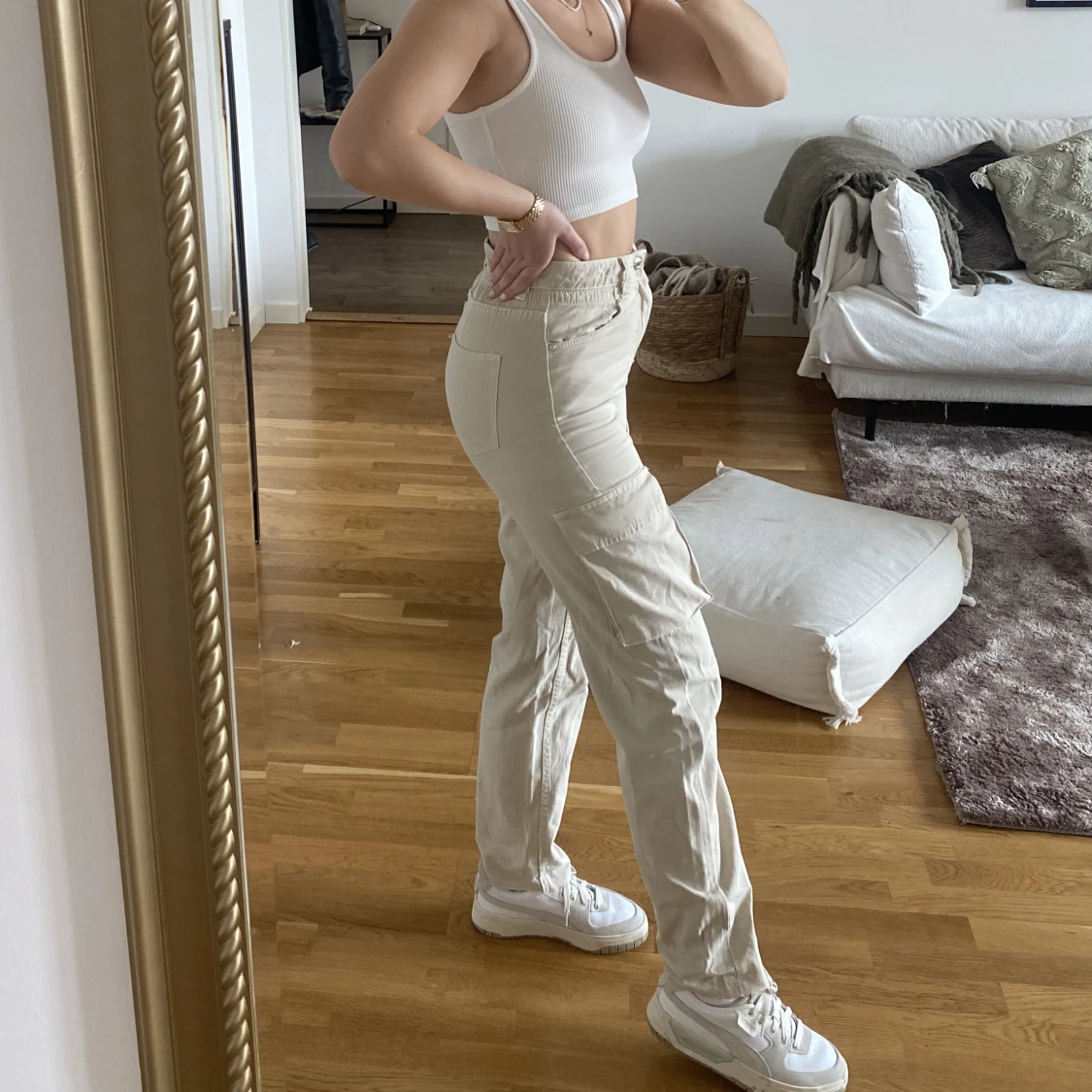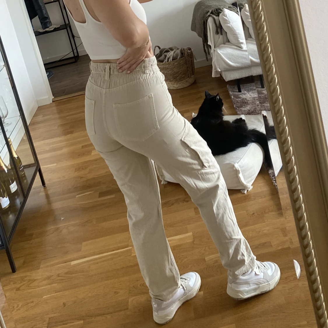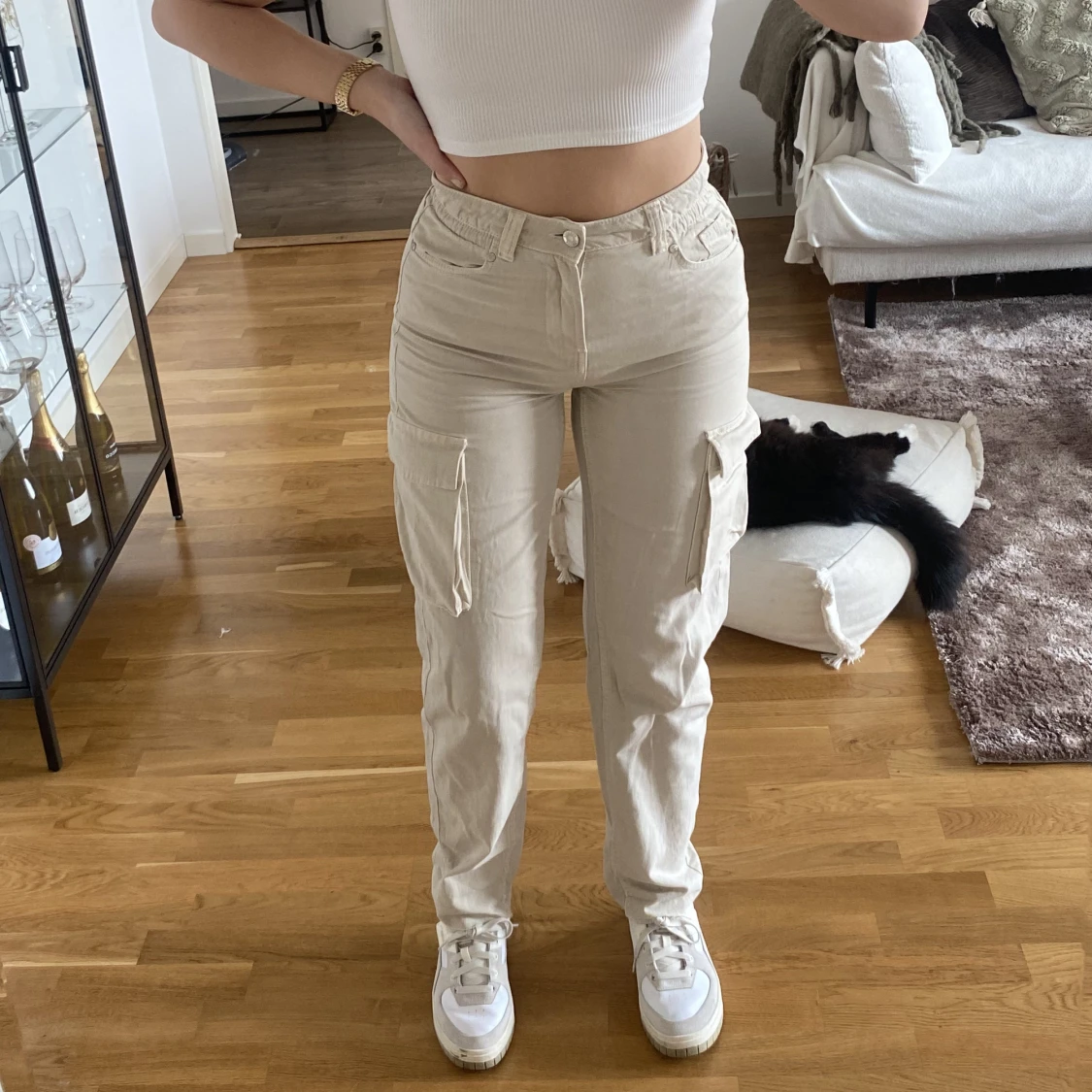 Beige Cargobyxor i storlek XS. Byxorna sitter jättebra på mig som är 161 cm 🤎