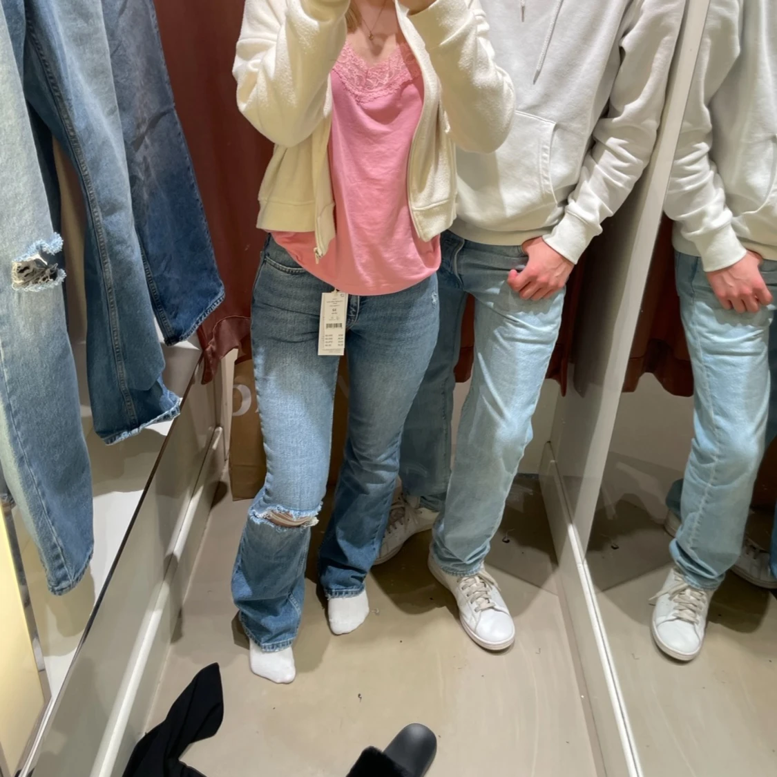 Jag säljer dessa jeansen, köptes för 500kr, säljer pga det är för små. Så fina passar mig som är 160 men som man ser på bilden passar de om man är lite längre oxå.🤗 dom är helt slutsålda