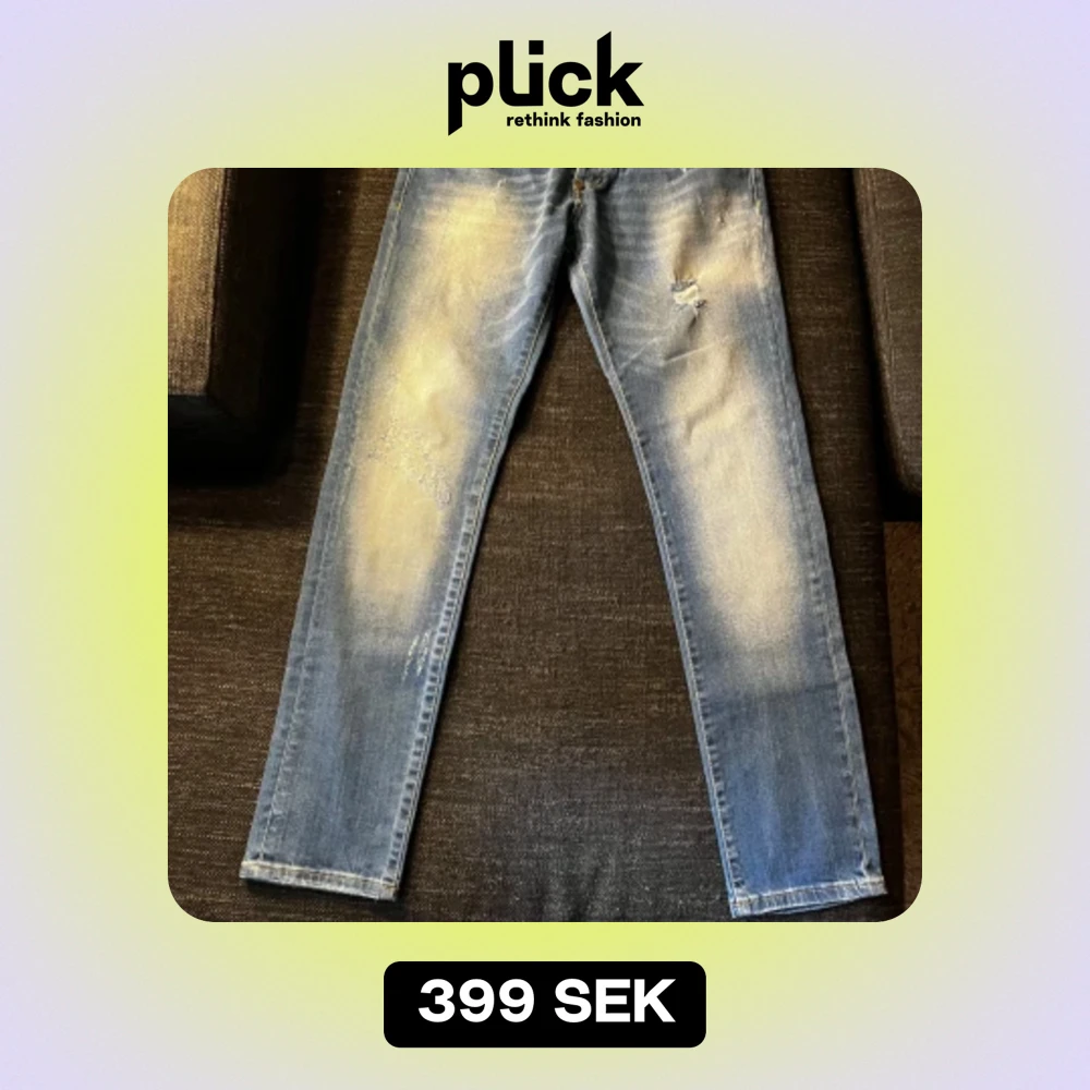 Ett par snygga Philip Plein Jeans i färgen blå med snygga slitningar. Modell: Strawberry Cheesecake. Galet bra pris. Jag är öppen för prisförslag. Dessa jeans har storleken W31 L32.