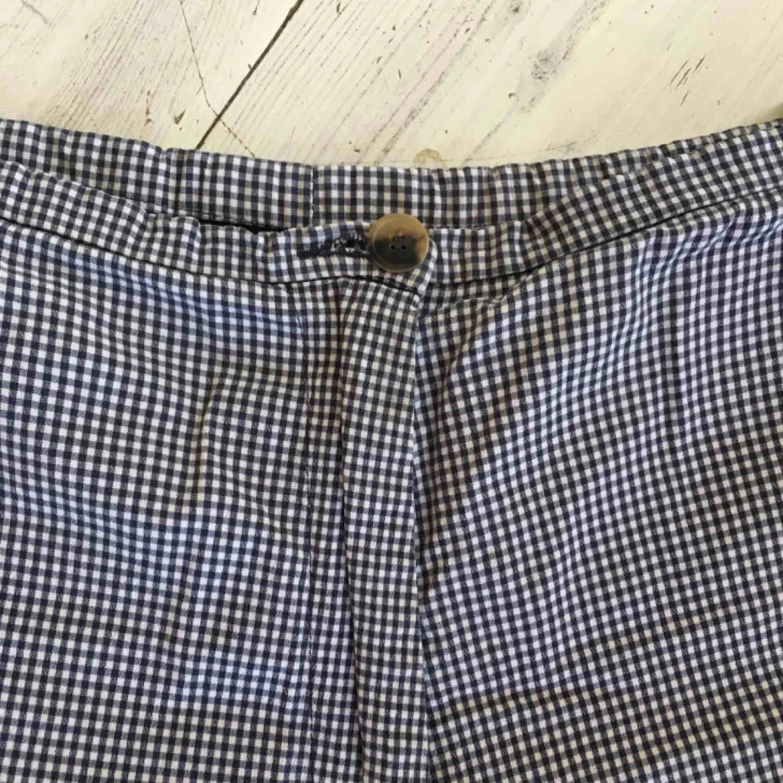 Fina glencheck-byxor! Jag är 175 cm lång och dessa slutar ungefär vid anklarna. Högmidjade!