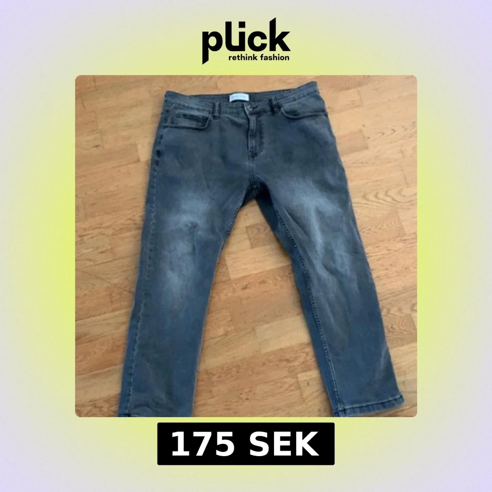 Säljer ett par grå jeans från pier one med snyggt tvättad look och klassiska fem fickor. Modellen har tapered fit med smalare ben och normal midja. Jeansen är tillverkade i mjukt denim-material och har dragkedja i gylfen. Perfekta för en chill och stilren vibe.