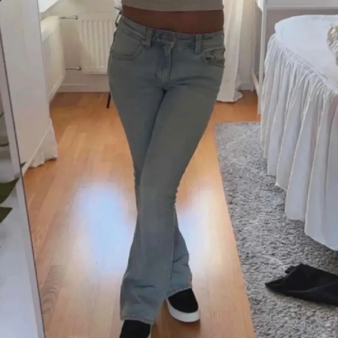 Snygga ljusblå jeans med bootcut passform och klassisk femficksdesign. Jeansen har hög midja och är tillverkade i mjukt denimtyg som sitter bekvämt. Perfekta för dig som gillar en retro vibe och vill ha ett par jeans som sticker ut.