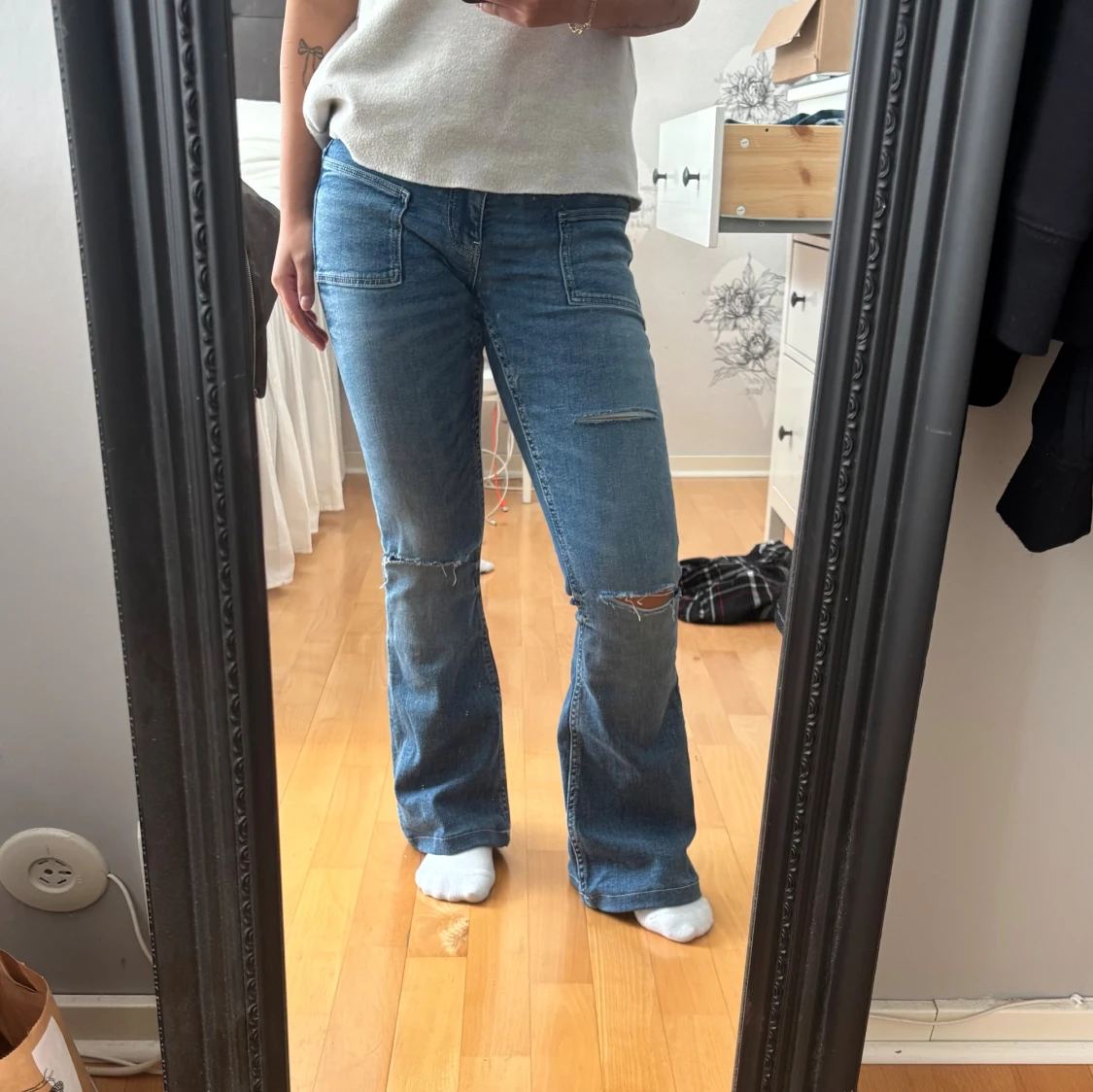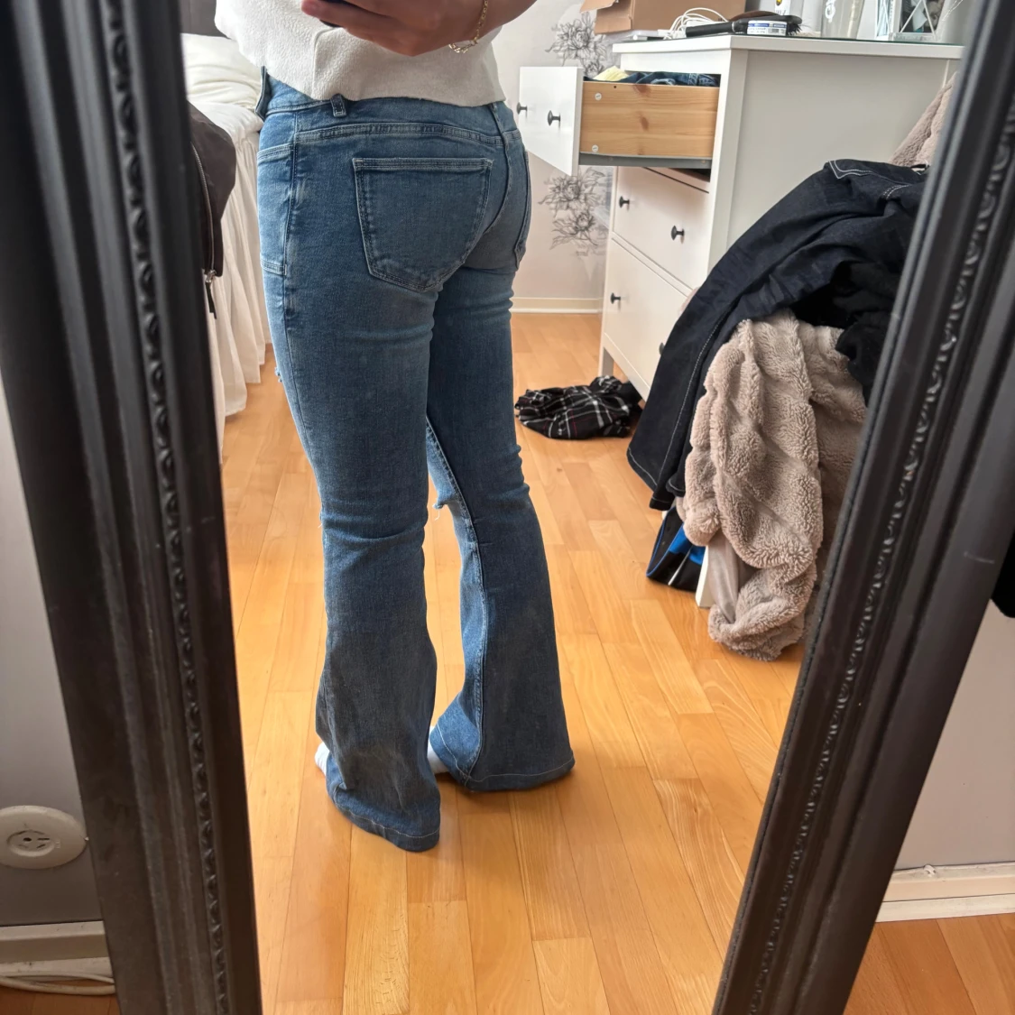 Slutsålda pleated jeans från Gina Tricot 14+🩷 Nästan aldrig använda då dom är lite stora på mig🙂(uppsydda) Jag är 160lång Innerbenslängd 75cm Midjemått 37cm tvärs över