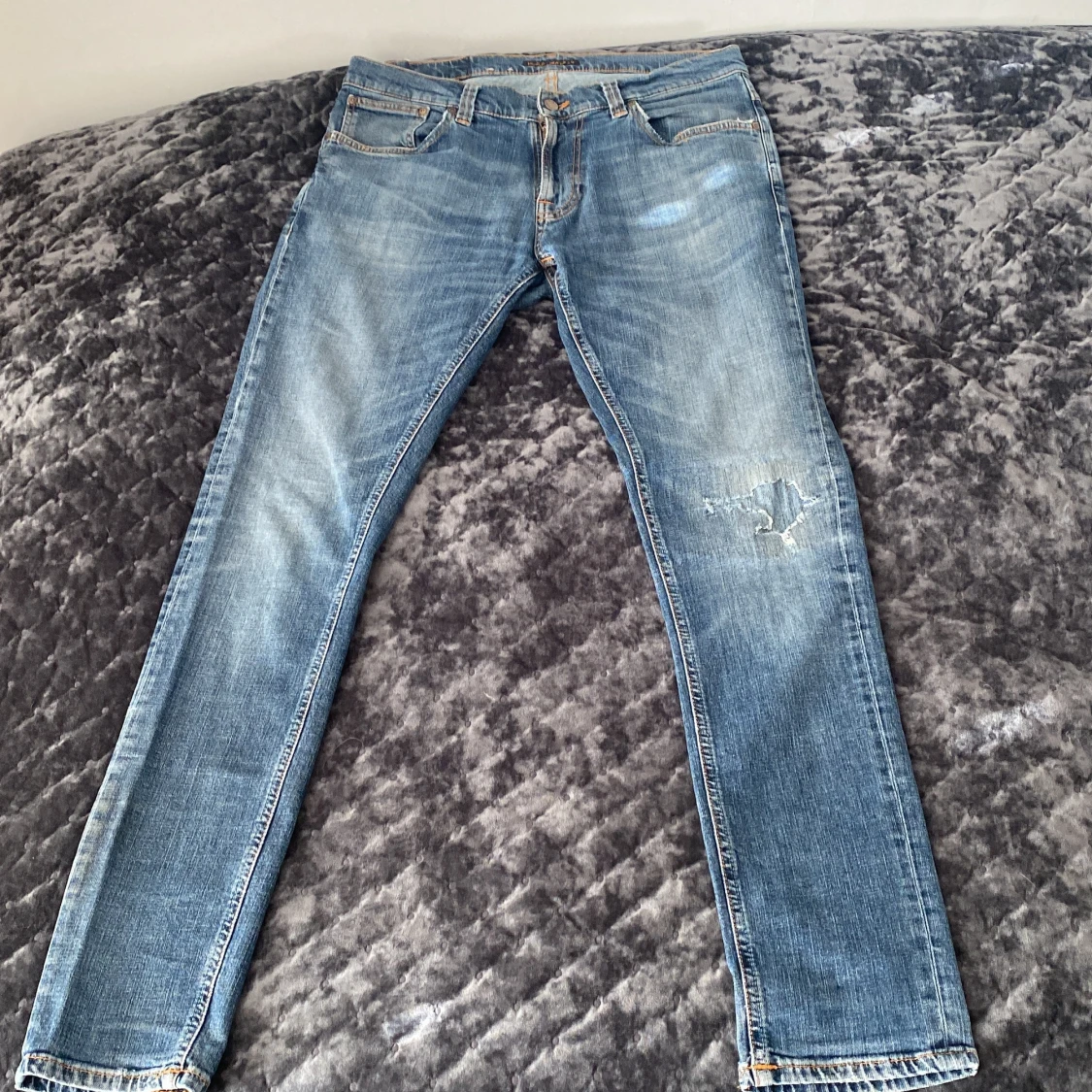 Tja! Säljer nu dessa galet feta Nudie Jeansen! Galet fet tvätt, en av de snyggare jag personligen har sett speciellt till sommaren! Slim fit. Säljer då de inte riktigt passar just mig, de sitter tts, W33 L34! De e distressed med en riktigt fet slitning på knät, som ej går igenom alls! Även värt att notera att det är gratis repairs i Göteborg, Malmö och Stockholm! Hör av er vid minsta fundering!🌟